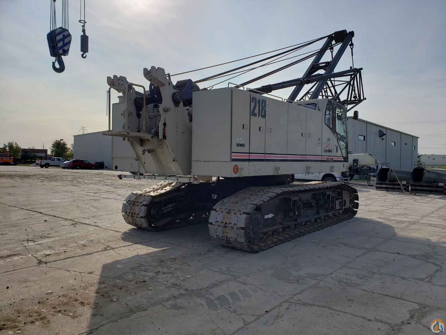 Used 2008 Link-Belt 218 HSL lattice boom crawler crane for sale or rent in Grimes, Iowa. This used 110-ton crawler crane is equipped with 220-feet of main boom. The lattice boom crane has a block and ball, 36-inch pads, auxiliary boom point sheave. Crane also comes equipped with a 30' jib.