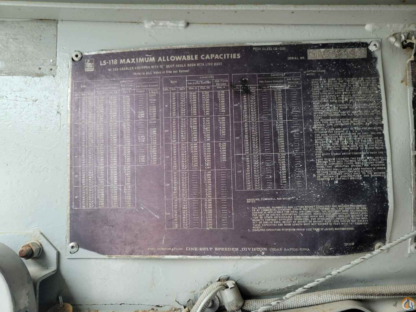 1974 LS118 60 ton Crawler Crane w/ third drum, power down on 2 drums, Pull Master M10 Boom mounted winch, Hydraulic set up for travelling leads, 130ft tube boom, Detroit 6-71, Single stage torque converter, Counterweight removal cylinder, Retractable undercarriage-Rebuilt less than 500 hrs, 36" shoes, Diesel cab heater.