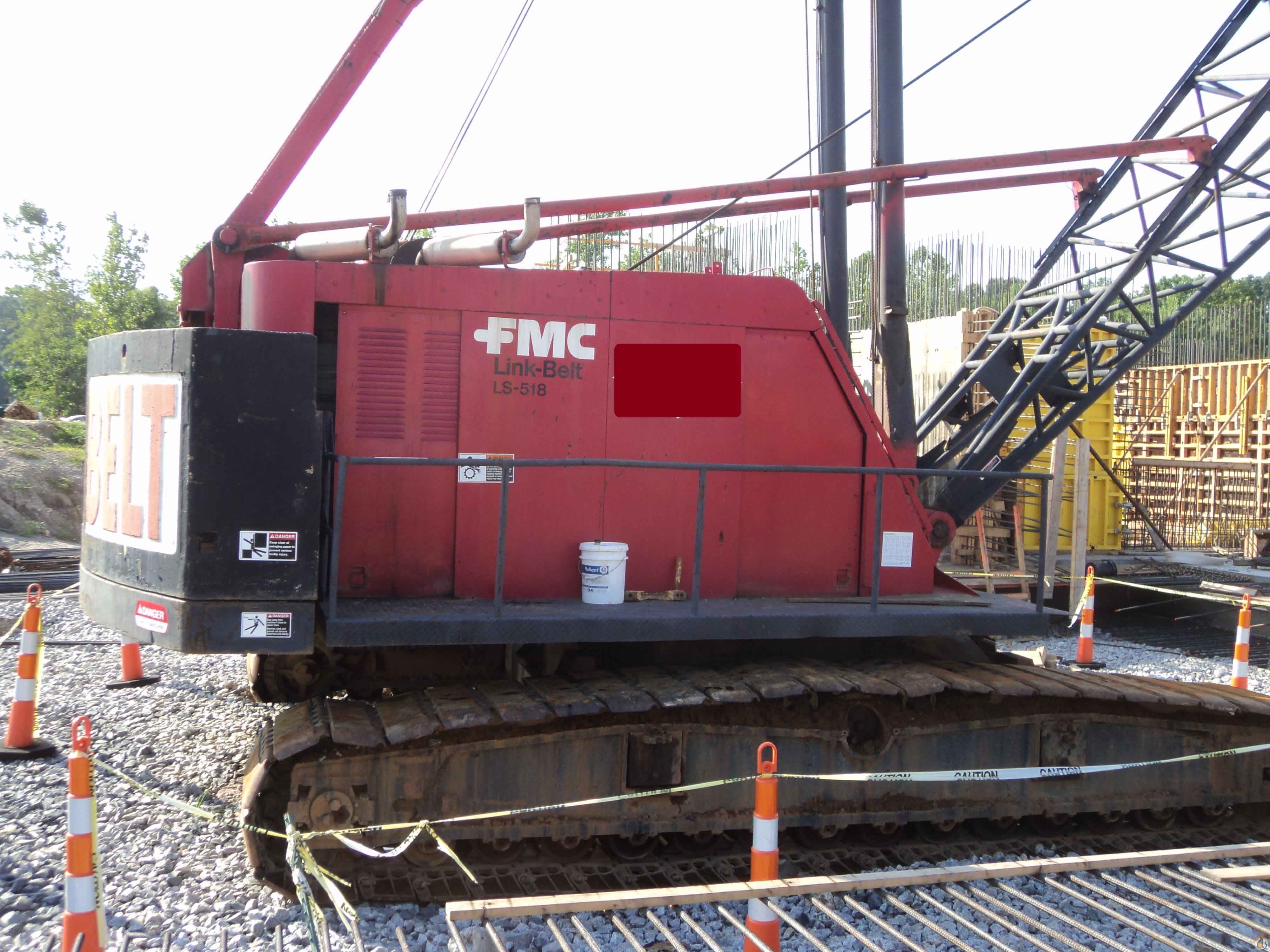 1968 Link-Belt LS-518 crawler. 150 ton, 200' tubular boom, power load lowering on both drums, AB counterweights, hook, ball weight & swivel, 150 ton block and catwalks.