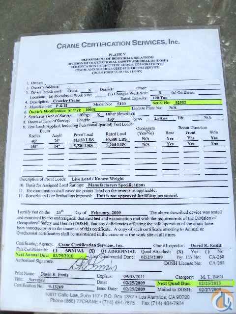 <p style="text-align: justify;"><span style="font-size: medium;">1981 P&H 5100, 100 Ton, CB&J#137, 170' 3 Section Tubular Boom, 30' Offsettable Jib, 2 Winches, DRI, PLL, A2B, LOHD 985 LOAD IND, Boom Angle IND, Plumbed for a 3rd drum or power pack, 100 ton 5 sheave Johnson block, 10 ton ball, Cummins DSL, Trans w/Twin DISC Torque converter, Self erecting, Frames extend and retract hydraulically, Folding Gantry, Catwalks on both sides, magnetorque hydraulic controls, No hydraulic leaks, 61,000# Total Counterweights. 2009 rebuilt undercarriage, CAL OSHA Certified. </span></p> <p class="MsoNormal" style="text-align: justify;"> </p> <p class="MsoNormal" style="text-align: justify;"><span style="font-size: medium;"><span class="MsoHyperlink"><a href="http://www.CranesBoomAndJib.com">http://www.CranesBoomAndJib.com</a></span> </span></p> <p class="MsoNormal" style="text-align: justify;"> </p> <p class="MsoNormal" style="text-align: center;"><span style="font-size: xx-large;"><strong>SOLD</strong></span></p>