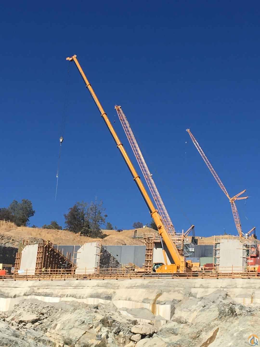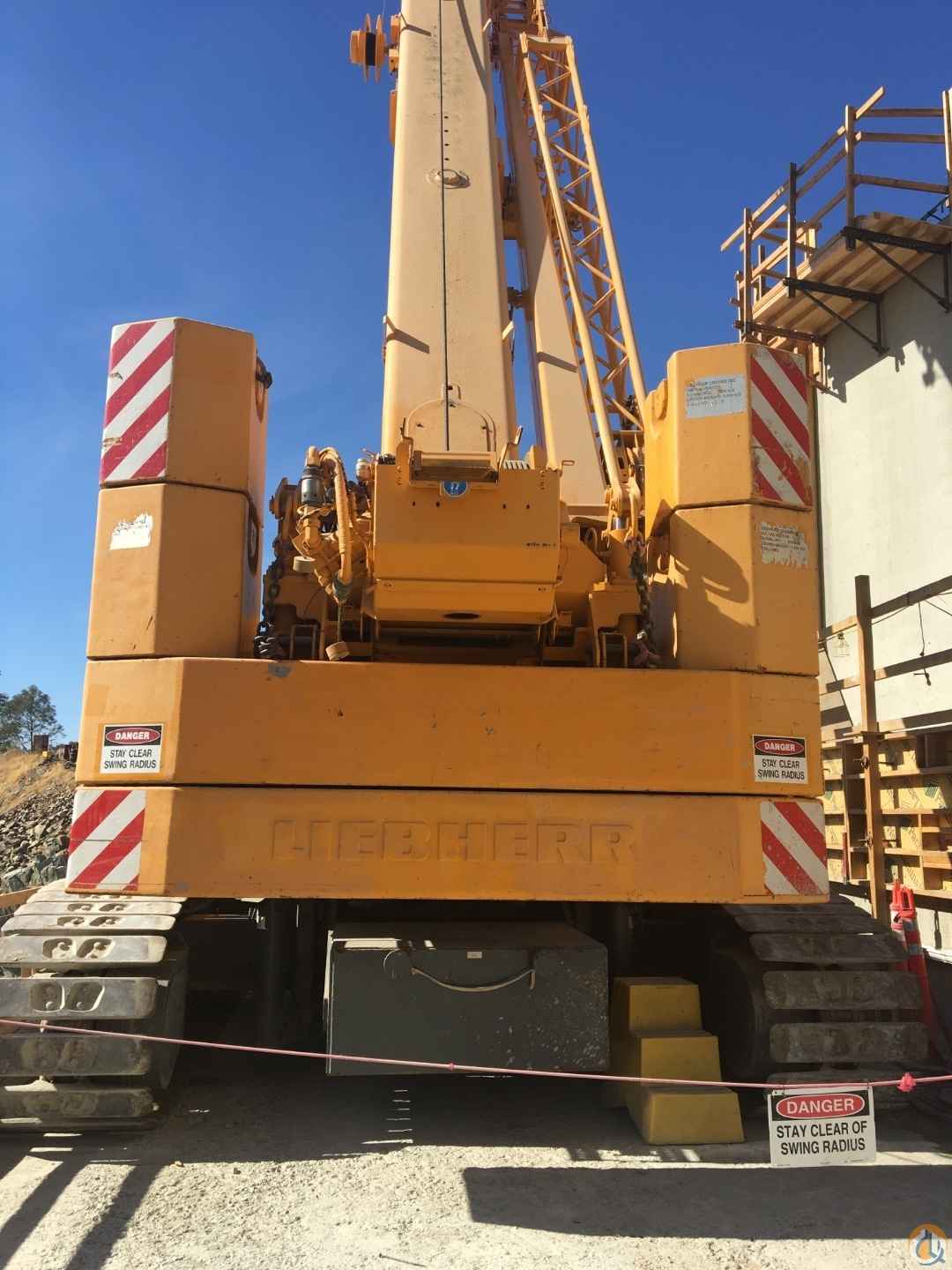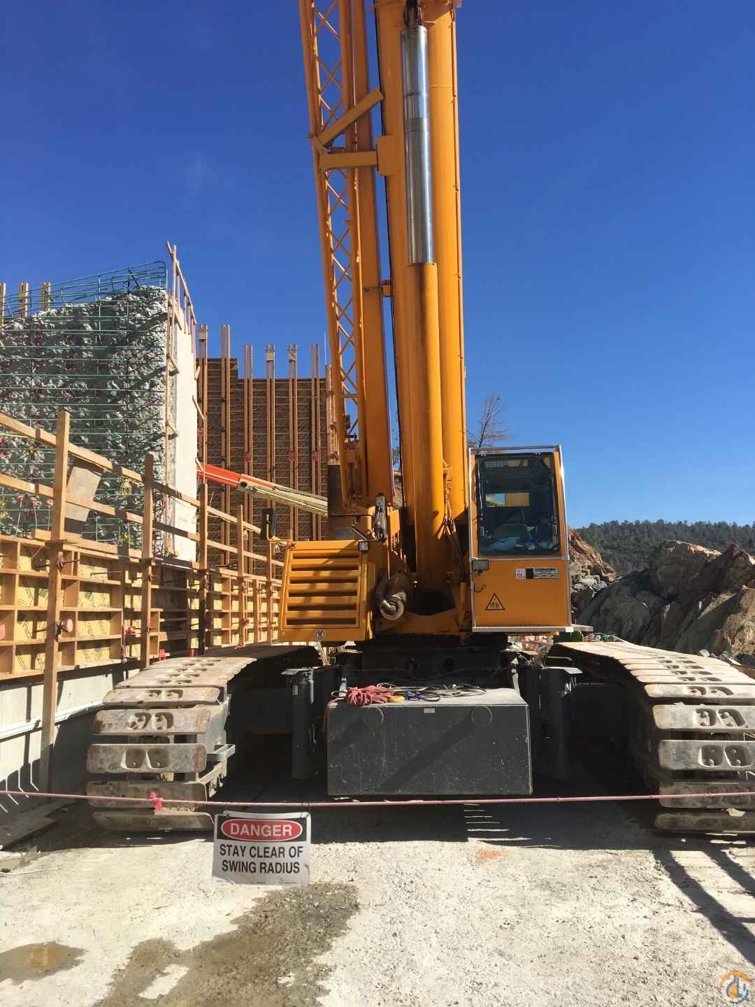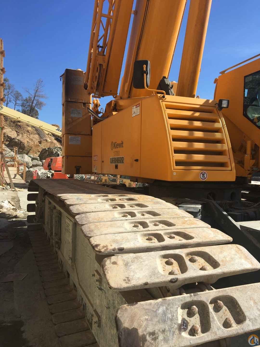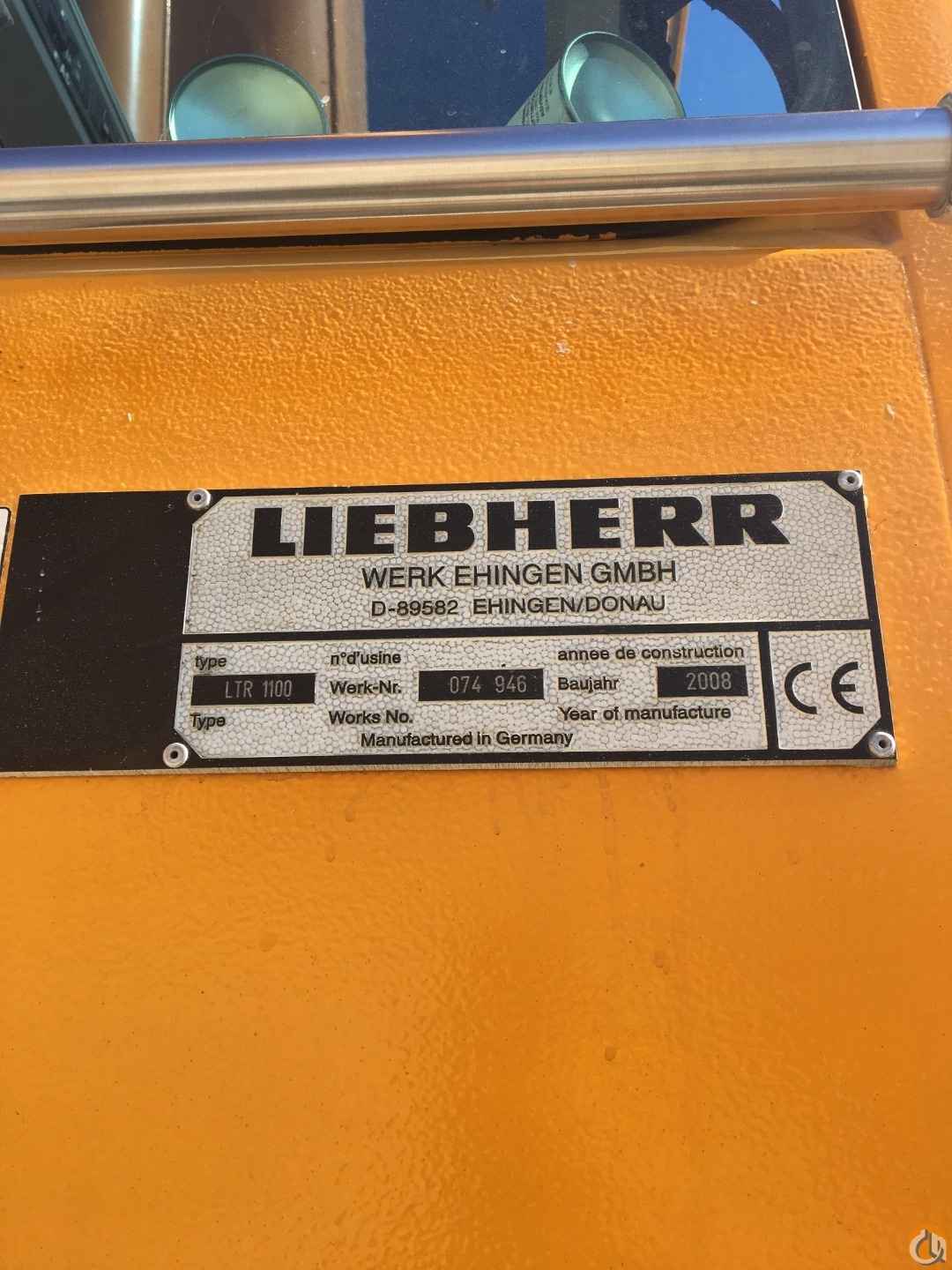 2009 Liebherr LTR1100 Telescopic Crawler Crane; 110 ton; extendable crawlers; 2' 11" flat track crawler pads; central counterweight 33,000 lbs; central greasing; Liebherr diesel engine 175 hp; EPA/CARB Tier 3; spark arrestor; two-axial piston pumps and geared twin pump hydraulic system; load sensing electro-hydraulic control of crane; oil cooler; (5) telescope sections; 38.4' - 171' boom length; rapid cycle telescoping system Telematik; galvanized super structure cabin tiltable hydraulically backwards 20-degrees; super structure counterweight 57,200 lbs automatic ballasting system; additional 13,200 lb counterweight for a total of 70,400 lb; Liccon overload safety indicator; test system for servicing; rooster sheave; second hoist; 130,020 lb capacity 3-sheave hook block; 57,420 lb capacity 1-sheave hook block; 19,360 lb capacity crane hook; second boom head top sheave; jackup telescope cylinders to demount the crawlers (vertical clearance 3.6' and horizontal clearance 9.8' for a flatbed trailer); radio; second hoist limit switch; air conditioning; (2) working floodlights at pivot section electrically adjustable; Calix engine pre-heating; Liccon work planner.