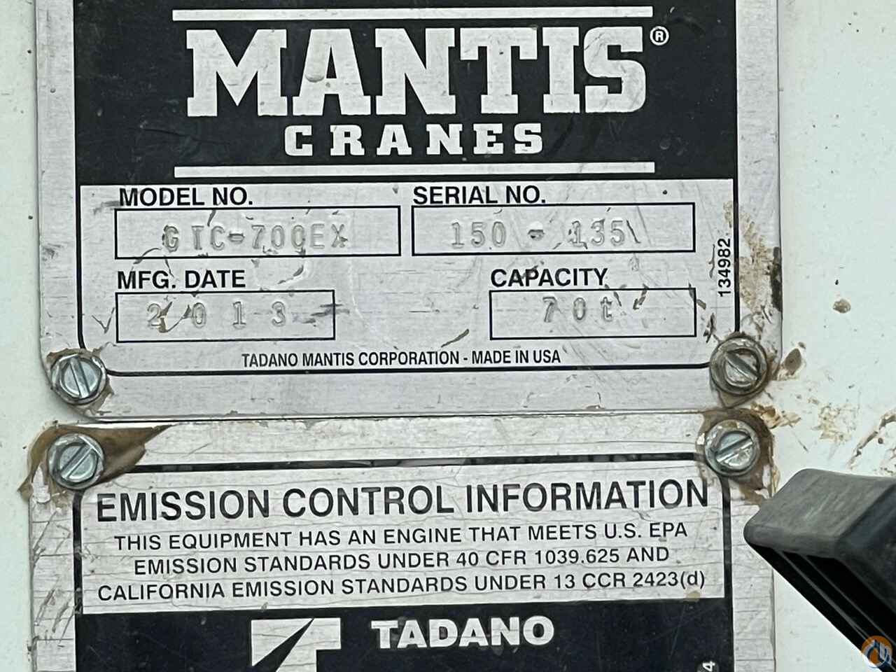 2013 Tadano Mantis GTC-700EX Crawler Crane, 4,341 Hours, 77 tons, Cummins 6.7 310 Hp Tier 3, 4 Section Boom, Max Reach 111’, Enclosed 20 degree cab, A/C, Joystick and Pedal Controls, No Jib, Parts Book Included and work ready.