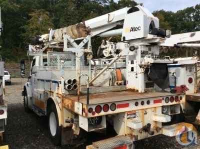 Altec DM45-BC, 19,460 Lb Digger Derrick s/n 0405DV1120, with 45' sheave height, 3 section hyd boom, tip winch, pole grabs, 4 hyd outriggers & stand up controls, corner mounted on 2005 Freightliner M2 106 Flatbed/Utility Truck, Cat C7 Acert diesel, Auto, A/C, with front winch, (Exempt from Odometer Disclosure - Reads 45,792 miles) Sales Tax Collected Based on Residency - More Information on this Equipment
