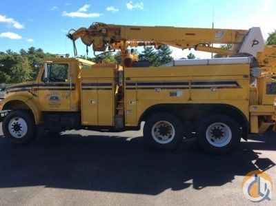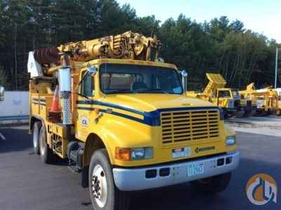 Pitman M45HT, 18,800 Lb Digger Derrick s/n 87112, with 45' sheave height, 3 section hyd boom, 2 spd digger, tip winch, pole grabs, 4 hyd outriggers & stand up controls, corner mounted on 1998 International 4900 T/A Utility Truck, DT530 diesel, 10-spd, A/C, with Joy D0100022101HA, frame mtd air compressor, s/n 400045 - More Information on this Equipment