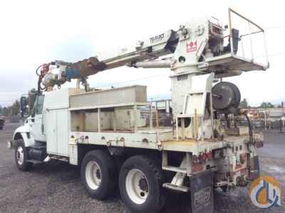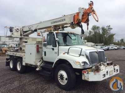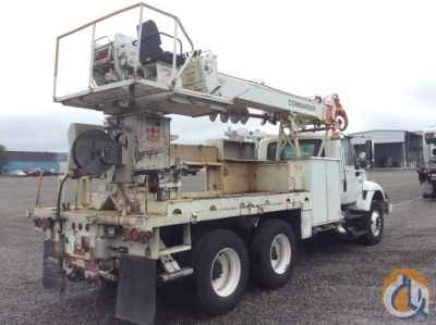 Telelect Commander 5050, 29,060 Lb Digger Derrick s/n 2020920049, with 52' sheave height, 3 section hyd boom, 2 spd digger, heel winch, pole grabs & rear riding console, rear mounted on 2003 International 7400 T/A Flatbed/Utility Truck, DT530 diesel, Auto, A/C, with front winch, (Reads 7,667 hours) - More Information on this Equipment
