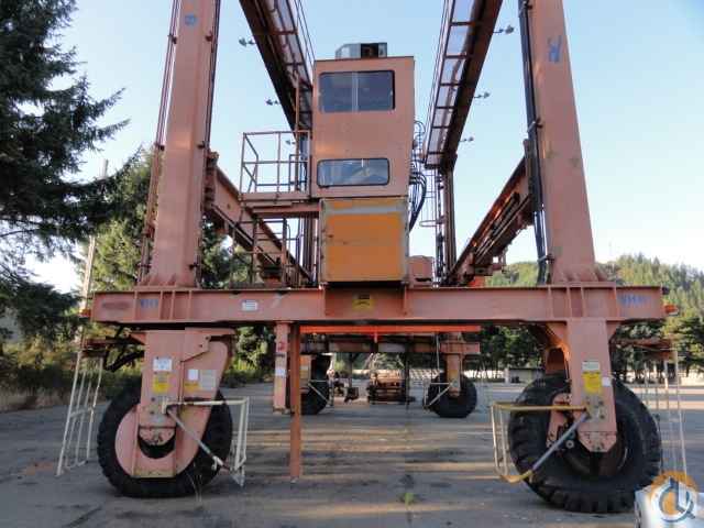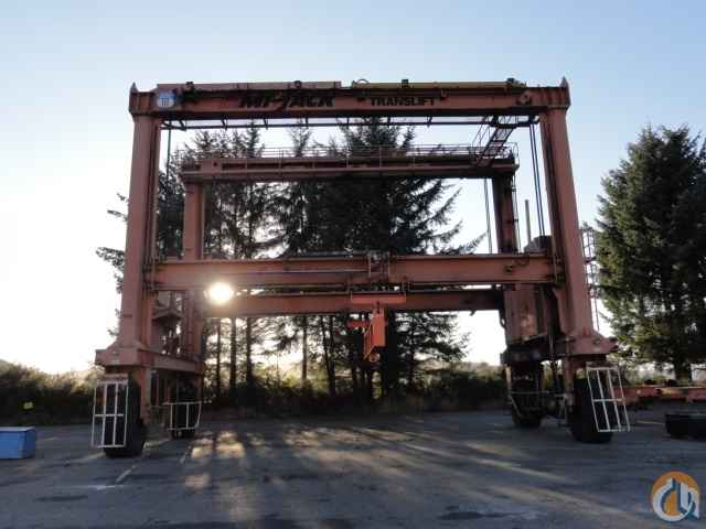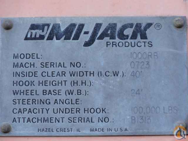 Mi-Jack Model 1000RB Gantry Crane, 100,000 Lb Translift Cap. Inside Clearance 40 ft, Hook Height 30 ft, Wheel Base 24 ft, Diesel Engine w/ Hydraulic Drive, Operators Cab w/ Lifting Beams for Chains, Hydraulic Frame Attachment for Containers, Please Note: Container Attachment being sold Separately, s/n 0723 , Only 4,675 Hrs, w/ Associated Job Box of Parts.