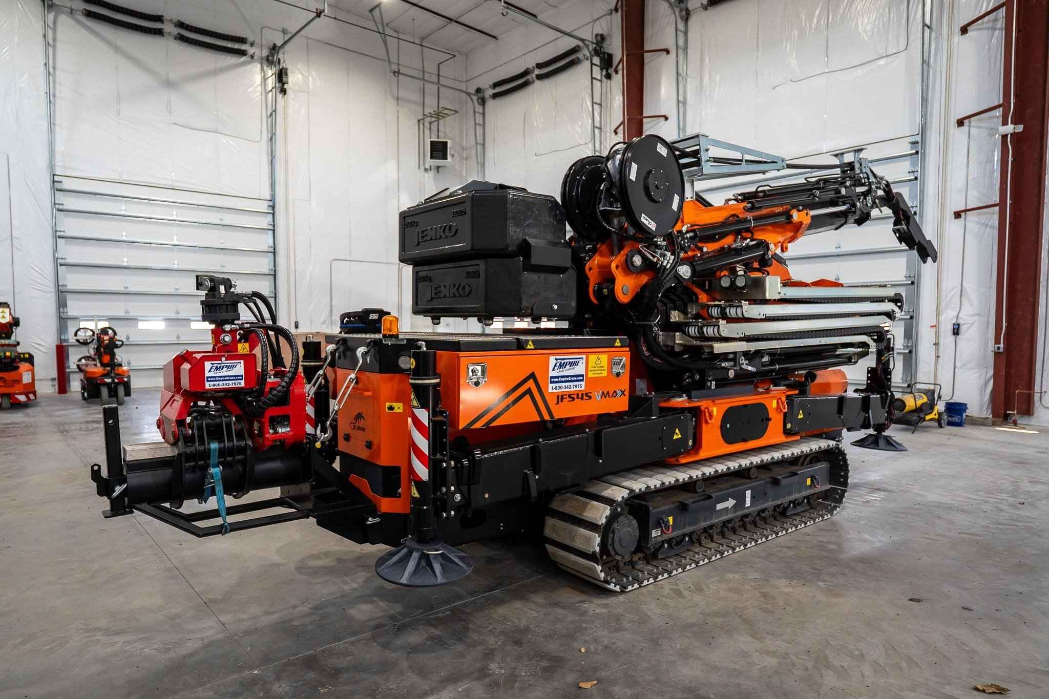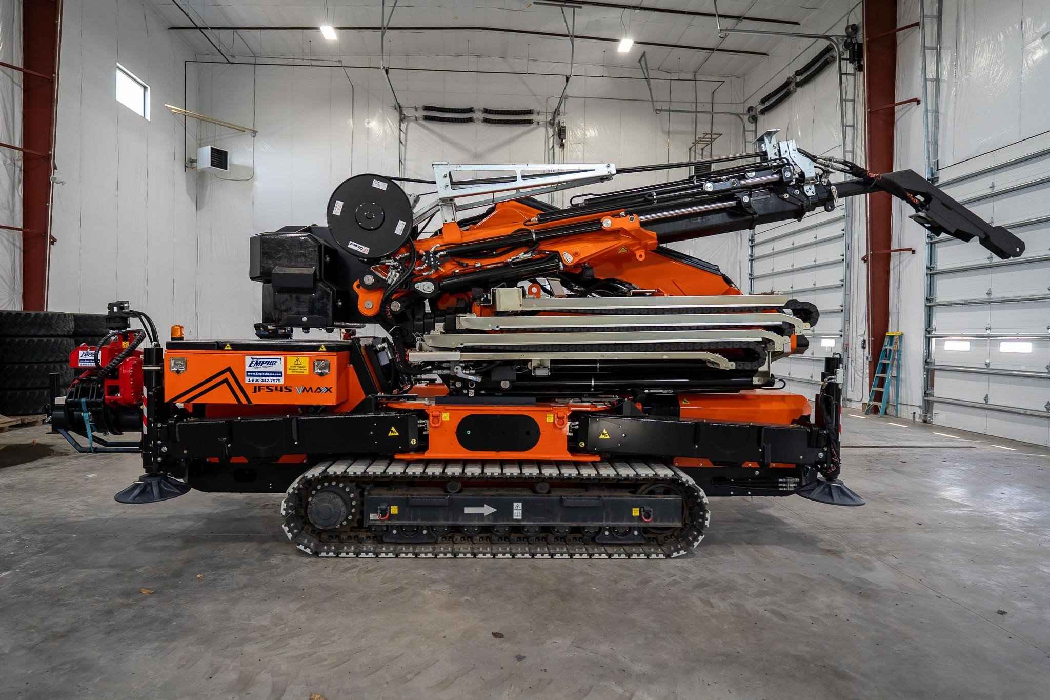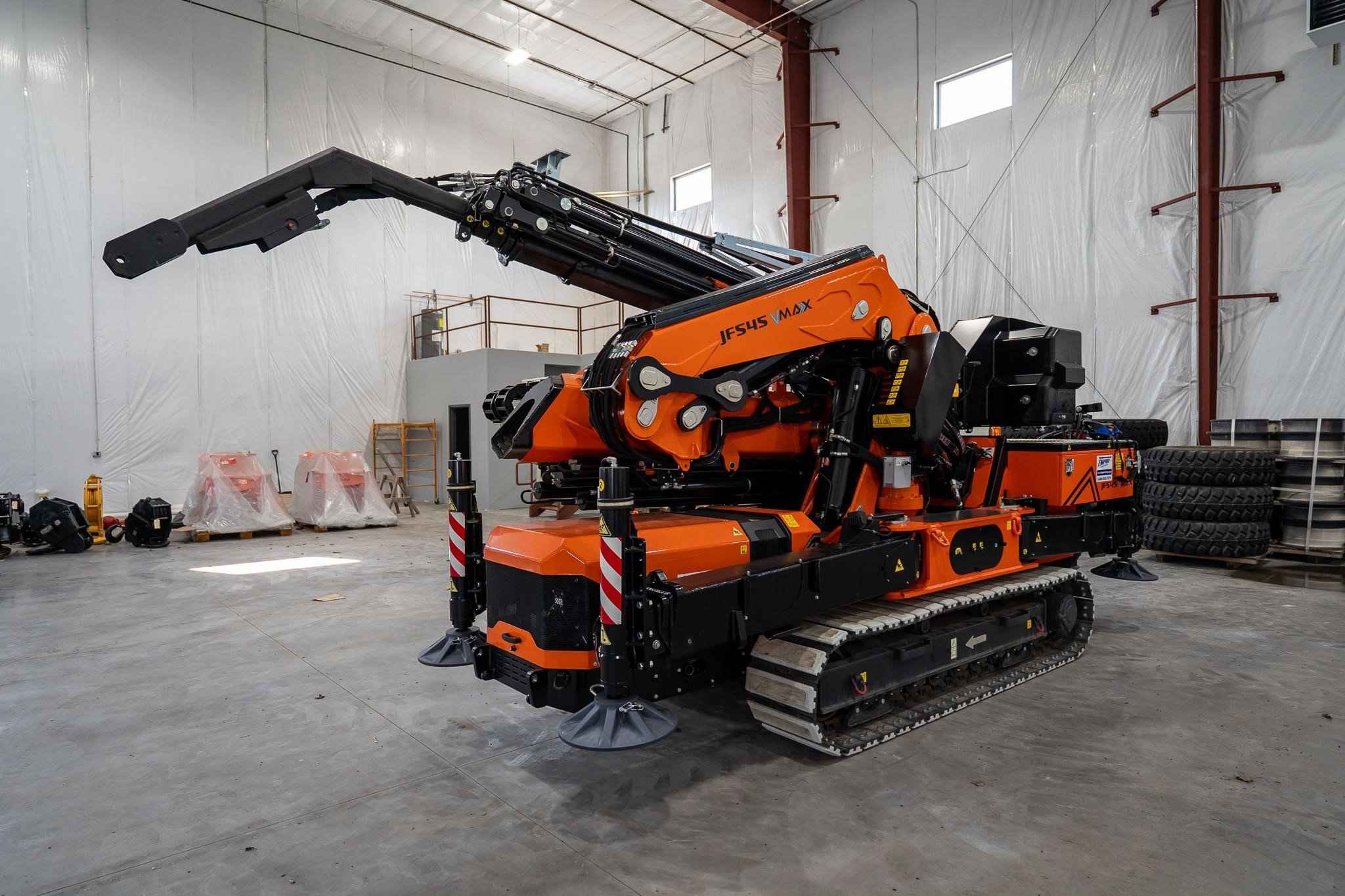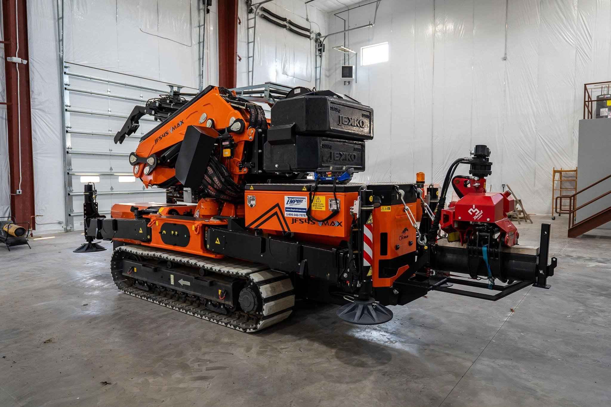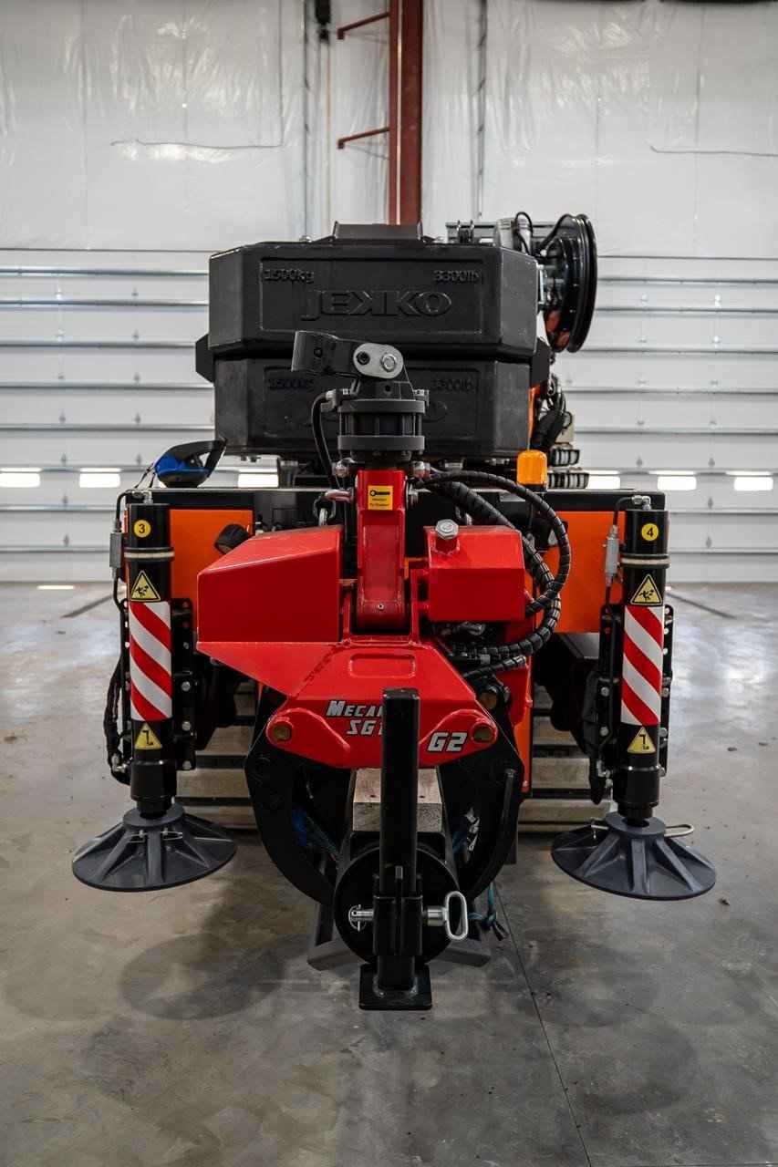 Brand New 2023 Jekko JF545CDH-VMAX Articulated Crawler Crane Mounted with a Mecanil SG160RC-T-G2 Grapple Saw Max Capacity: 34,170 lbs. Dimensions: 18' 06" x 6' x 9' 6" Vertical Lift Height: 106' Horizontal Lift Height: 96' Included optional equipment: Low Marking White Track pads for JF545 Towing kit for JF365-545-990 Hydraulic Activations for Towing winch Automatic system for counterweight self-dismantling for JF545 Hydraulic luffing jib with link, 6,614# SWL, 6 hydraulic extensions Double multi quick-coupling (oll) between crane and JIB of JFS45V-MAX Manual extension (on the 6th extension of the jib) Grapple saw Mecanil SG160RC-T-G2 full kit Call our office for additional information!
