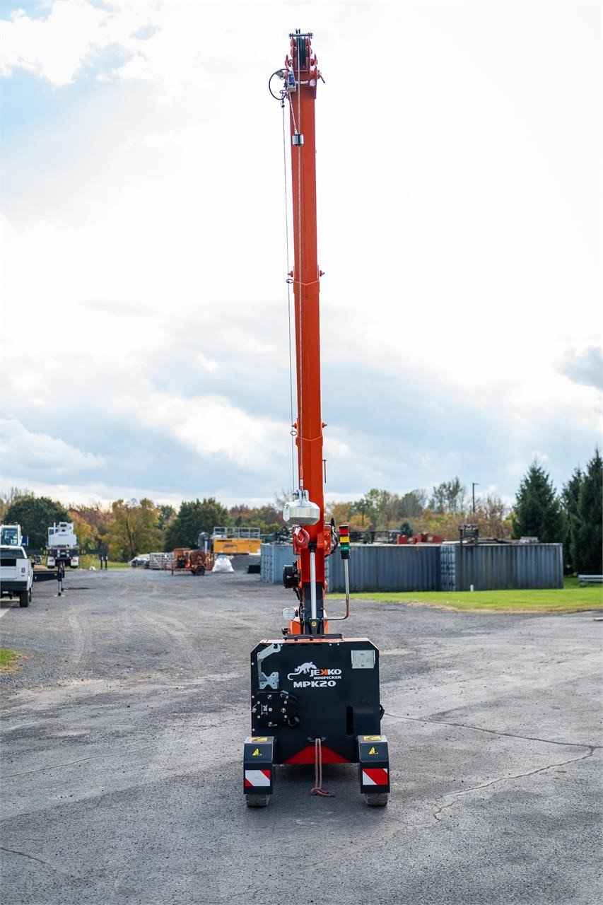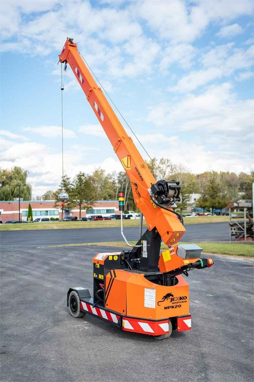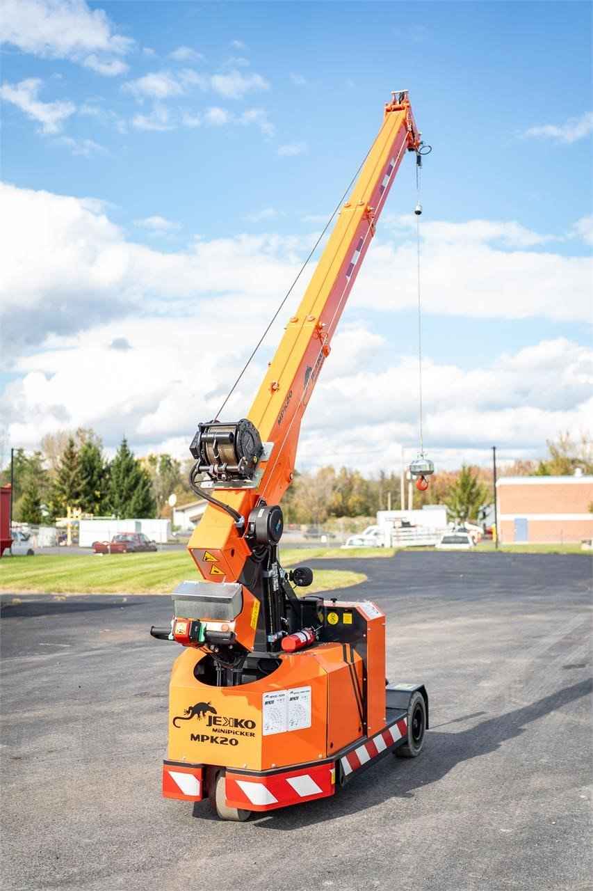 2023 Jekko MPK20W Max. Capacity: 4,400 lbs. Dimensions: 104 in. [7/8] x 37 in. [3/8] x 76 in. [5/8] Max. Vertical Reach: 16 ft. Max. Horizontal Reach: 9 ft. Battery Powered Mini Crane 2 Ton - 1 Sheave Pulley Block D7 Rope Winch 600KG 60M rope 7MM and pulley head Hydraulic extra functions Radio remote control The essential partner for industrial maintenance and glass handling. Reliable, safe and easy to use: a small crane with great potential.