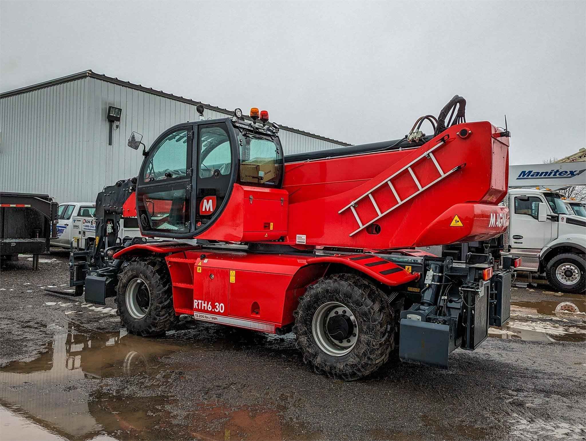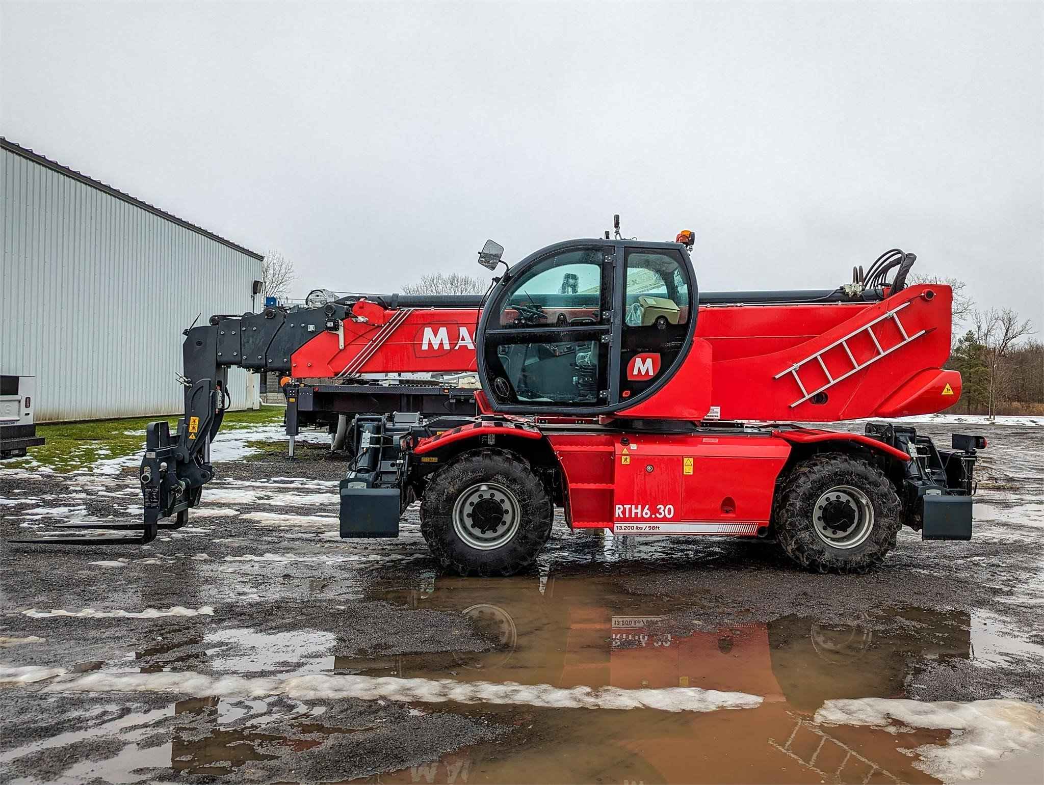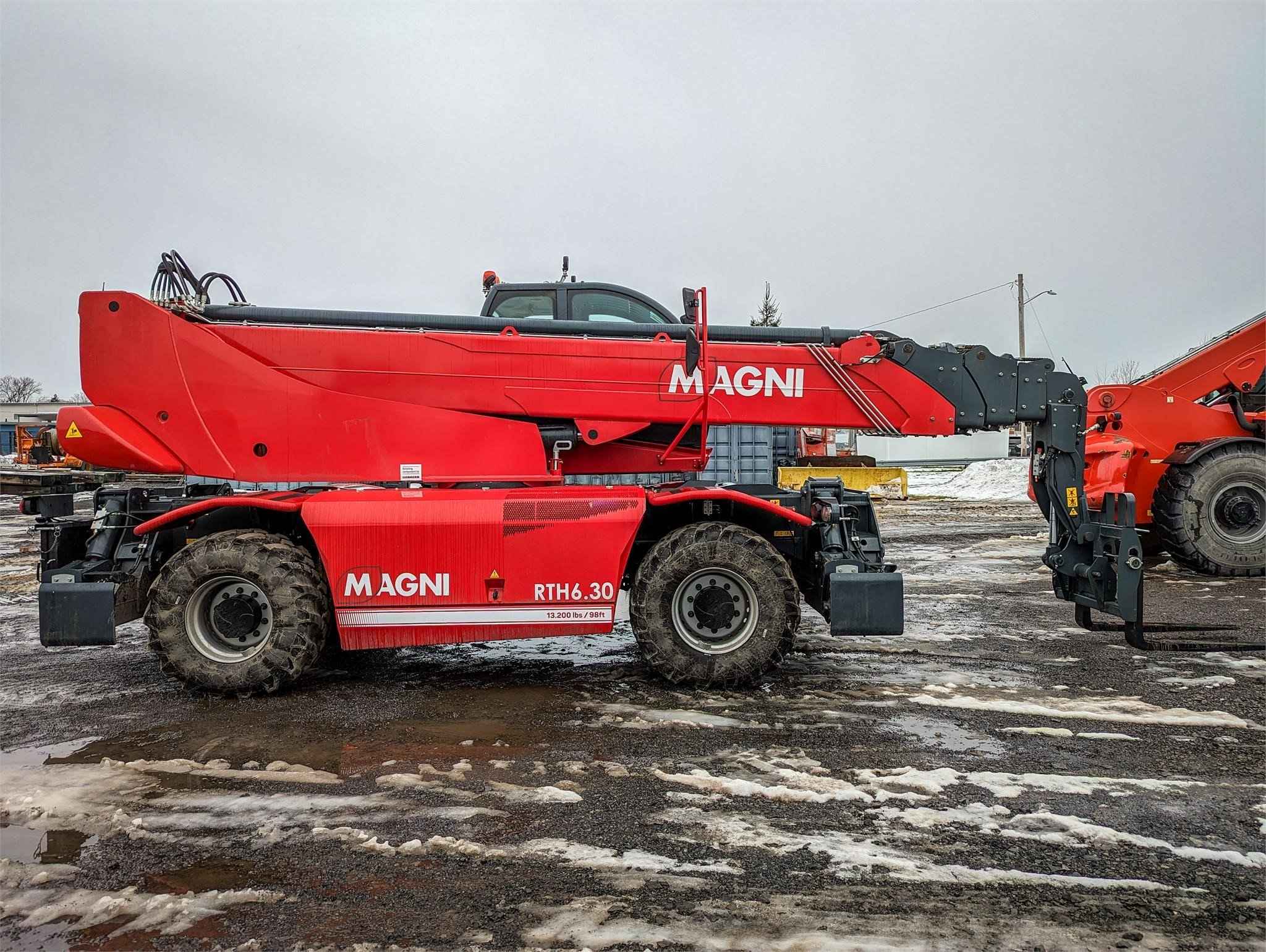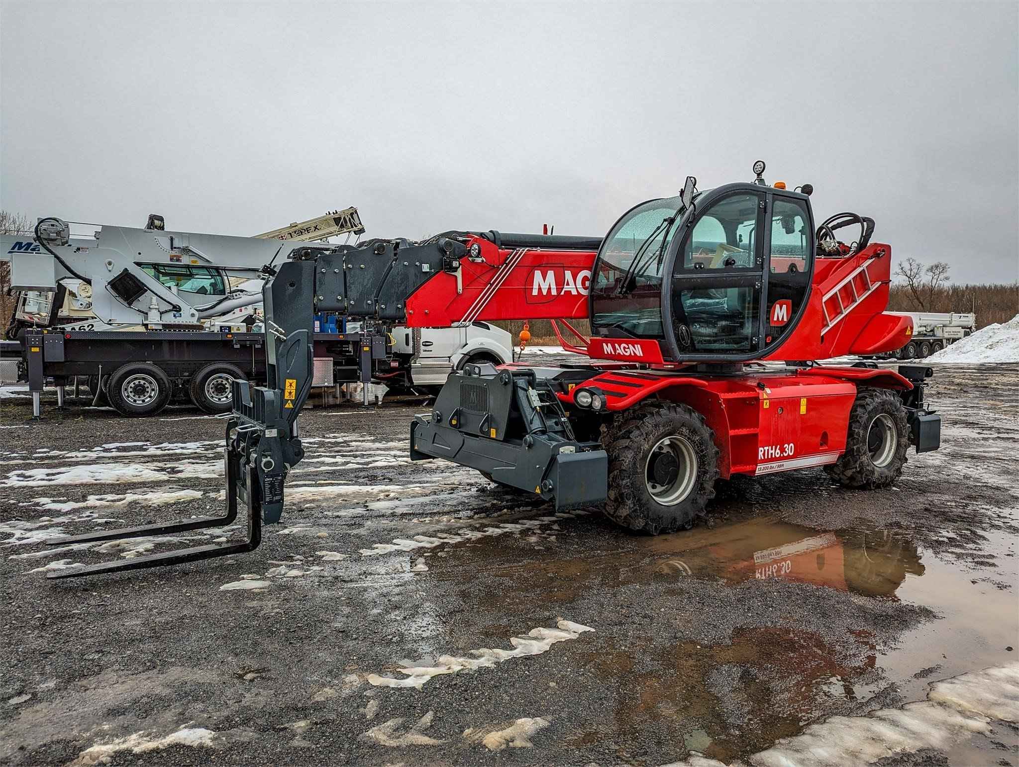 Now available in Syracuse! Stabilisers: Scissors Lifting capacity: 13,200 lbs Capacity at maximum height: 5,500 lbs Lifting height: 97' 9'' Reach: 85' 4'' Engine: Volvo TAD 572 VE - Tier 4f Rated power: 160 kW (218 hp) 2,300 rpm Number of gears: 2/2 Hydraulic system: 350 bar (Load Sensing) Length: 25' 7'' Width: 8' 4'' Ground clearance: 12'' Unladen weight: 48,060 lbs Travel speed: 25 mph Rotation: 360° (continue) Climate control as standard: Yes Automatic accessory recognition: Yes Reversable fan drive: Yes The RTH 6.30 is a tough, high-performance rotating telescopic handler. It can lift loads to a height of 98 ft and is equipped with scissor stabilizers to ensure greater safety and stability during working maneuvers. The scissor stabilizers are ideal even with limited space available; even when it is only partially stabilized, the machine is programmed to provide the best possible load chart on each side. When the stabilizers are fully extended, on the other hand, they guarantee maximum machine performance over 360° as they are able to work over a very wide stabilization base. It is compatible with a huge range of accessories, thanks also to the RFID system which provides automatic recognition of the attachment and creation of the relative load charts; this telescopic handler is able to meet a wide range of applications in construction and industry.