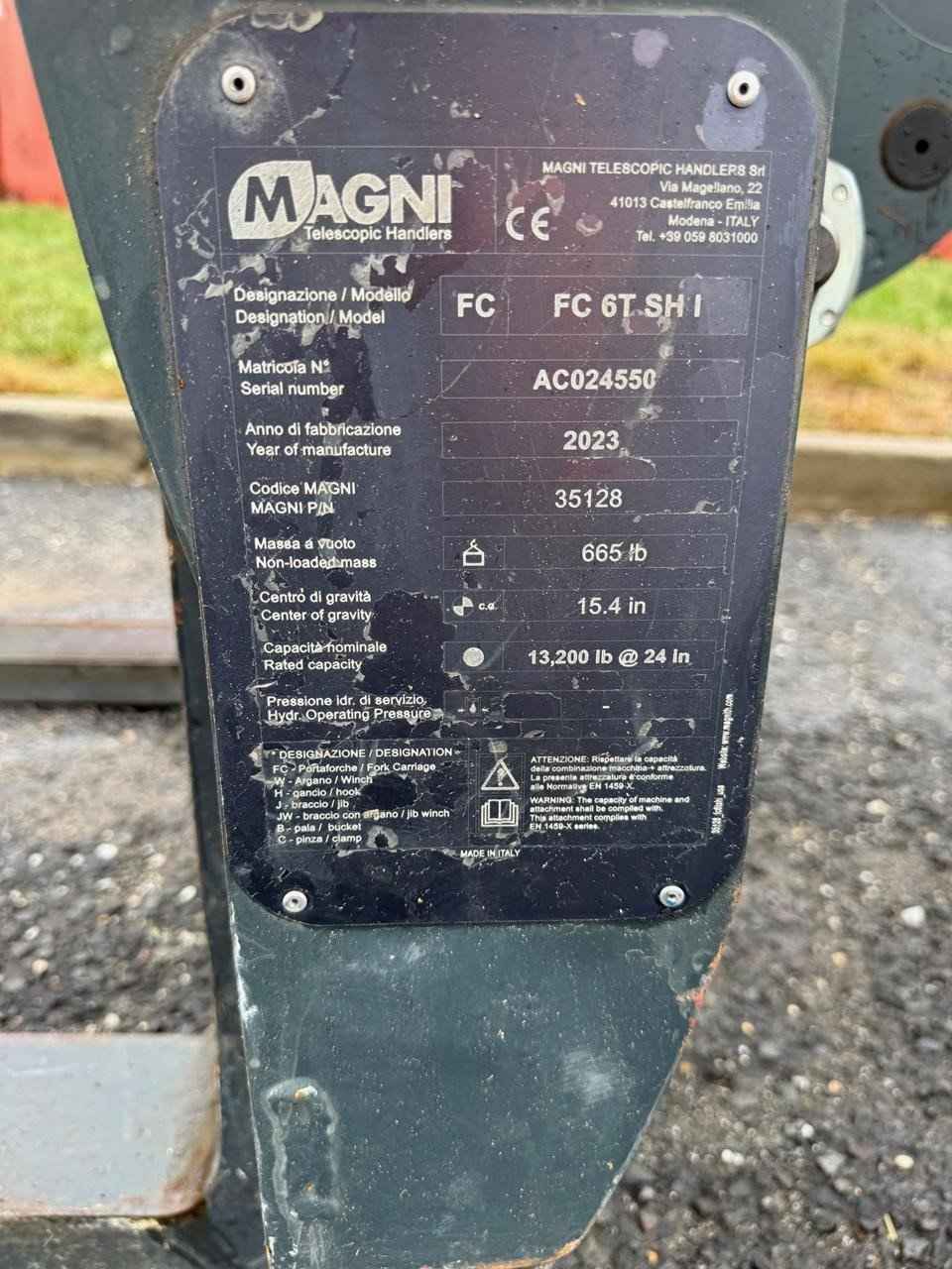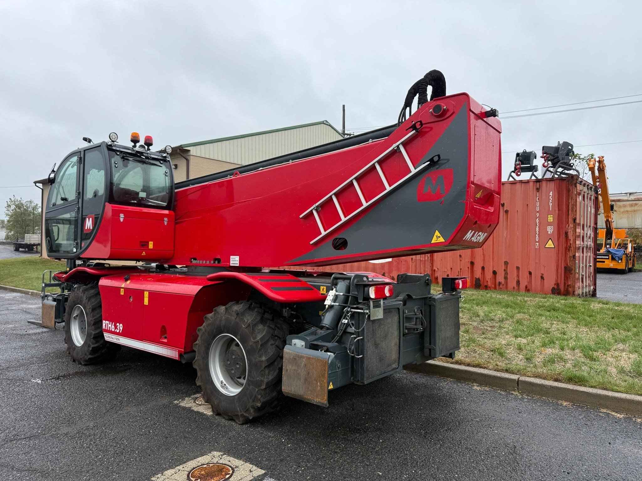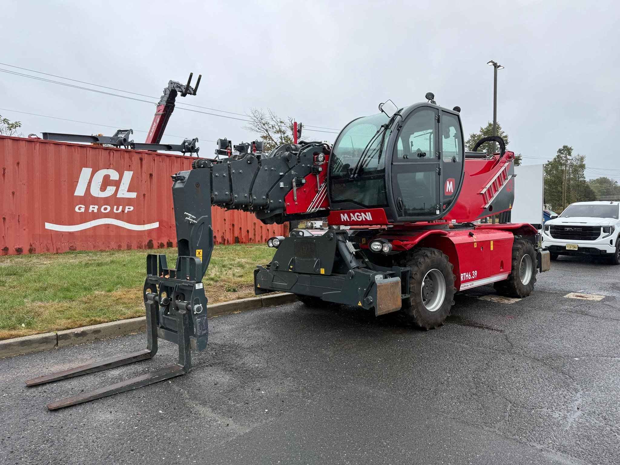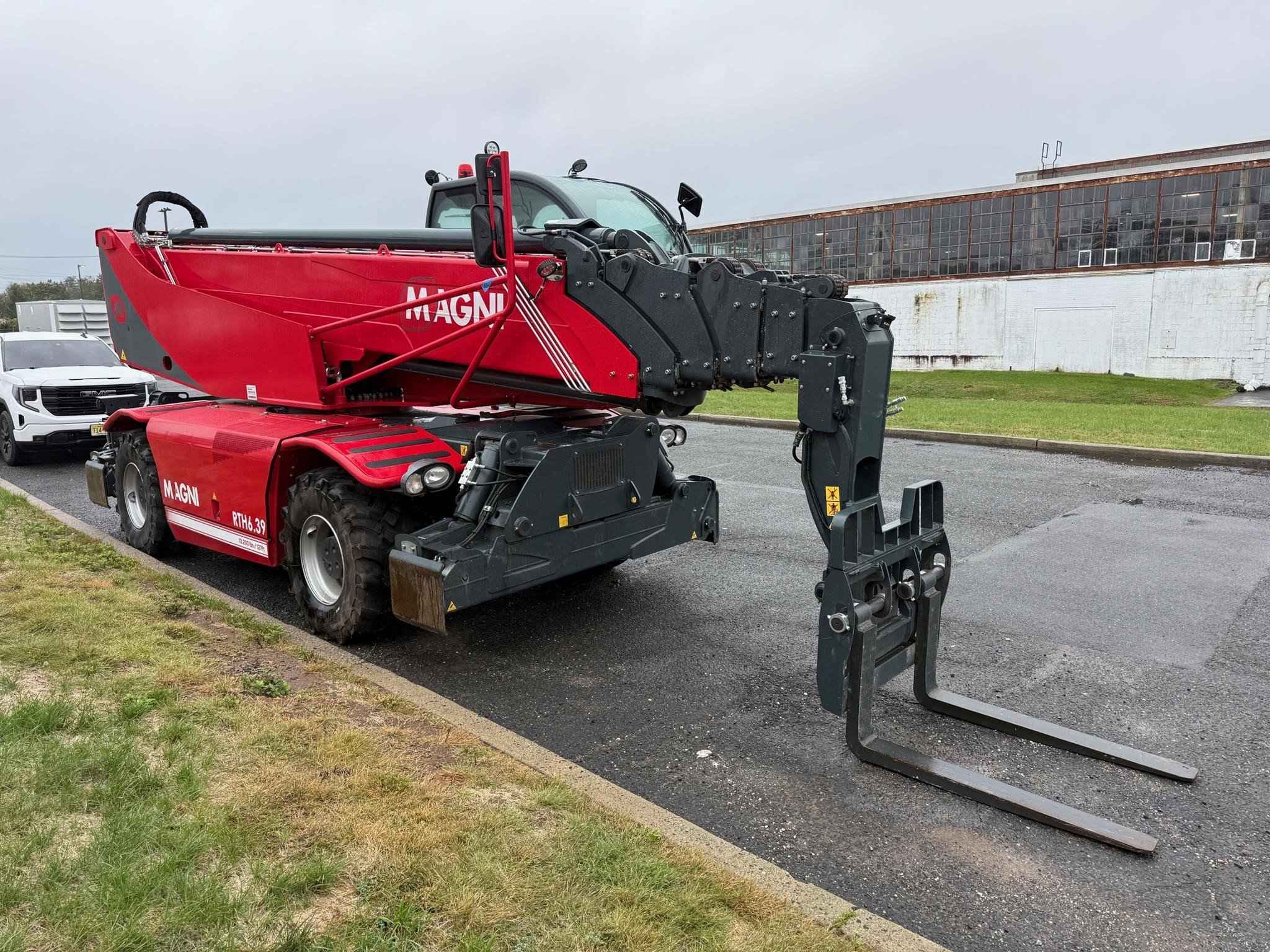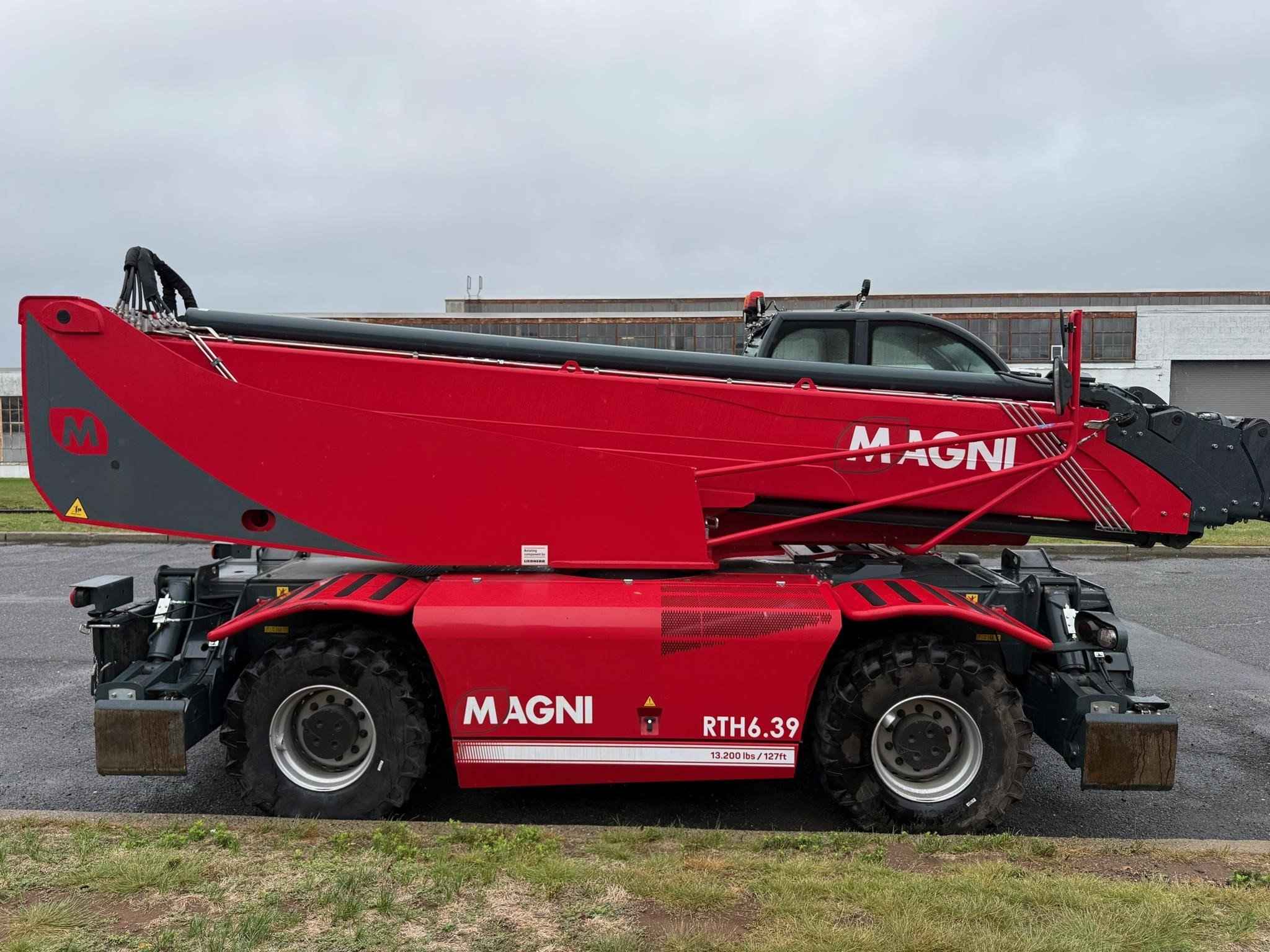 2023 Magni RTH 6.39 Stabilisers: Scissors Lifting capacity: 13,200 lbs Capacity at maximum height: 5,000 lbs Lifting height: 127' 7'' 1,531 Reach: 88' 7'' 1,063 Engine: Volvo TAD 572 VE - Tier 4f Rated power: 175 kW (238 hp) 2,300 rpm Number of gears: 2/2 Hydraulic system: 350 bar (Load Sensing) Length: 28' 3'' 339 Width: 8' 4'' 100 Ground clearance: 12'' 12 Unladen weight: 52,910 lbs Travel speed: 25 mph Rotation: 360° (continue) Climate control as standard: Yes Automatic accessory recognition: Yes Reversable fan drive: Yes Call Empire Crane today for a quote.