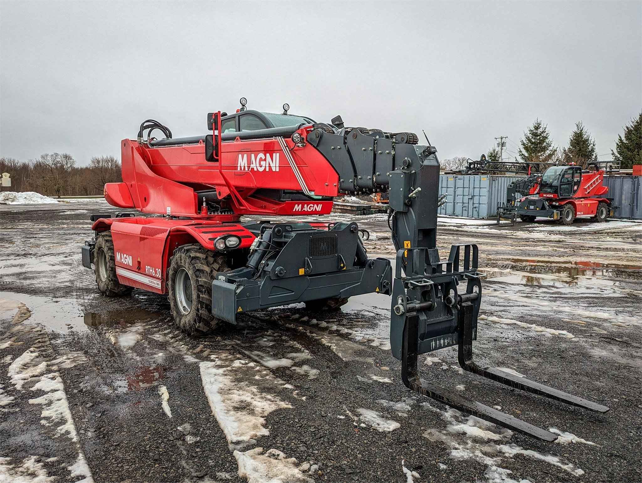 Now available in Syracuse! Stabilisers: Scissors Lifting capacity: 13,200 lbs Capacity at maximum height: 5,500 lbs Lifting height: 97' 9'' Reach: 85' 4'' Engine: Volvo TAD 572 VE - Tier 4f Rated power: 160 kW (218 hp) 2,300 rpm Number of gears: 2/2 Hydraulic system: 350 bar (Load Sensing) Length: 25' 7'' Width: 8' 4'' Ground clearance: 12'' Unladen weight: 48,060 lbs Travel speed: 25 mph Rotation: 360° (continue) Climate control as standard: Yes Automatic accessory recognition: Yes Reversable fan drive: Yes The RTH 6.30 is a tough, high-performance rotating telescopic handler. It can lift loads to a height of 98 ft and is equipped with scissor stabilizers to ensure greater safety and stability during working maneuvers. The scissor stabilizers are ideal even with limited space available; even when it is only partially stabilized, the machine is programmed to provide the best possible load chart on each side. When the stabilizers are fully extended, on the other hand, they guarantee maximum machine performance over 360° as they are able to work over a very wide stabilization base. It is compatible with a huge range of accessories, thanks also to the RFID system which provides automatic recognition of the attachment and creation of the relative load charts; this telescopic handler is able to meet a wide range of applications in construction and industry.