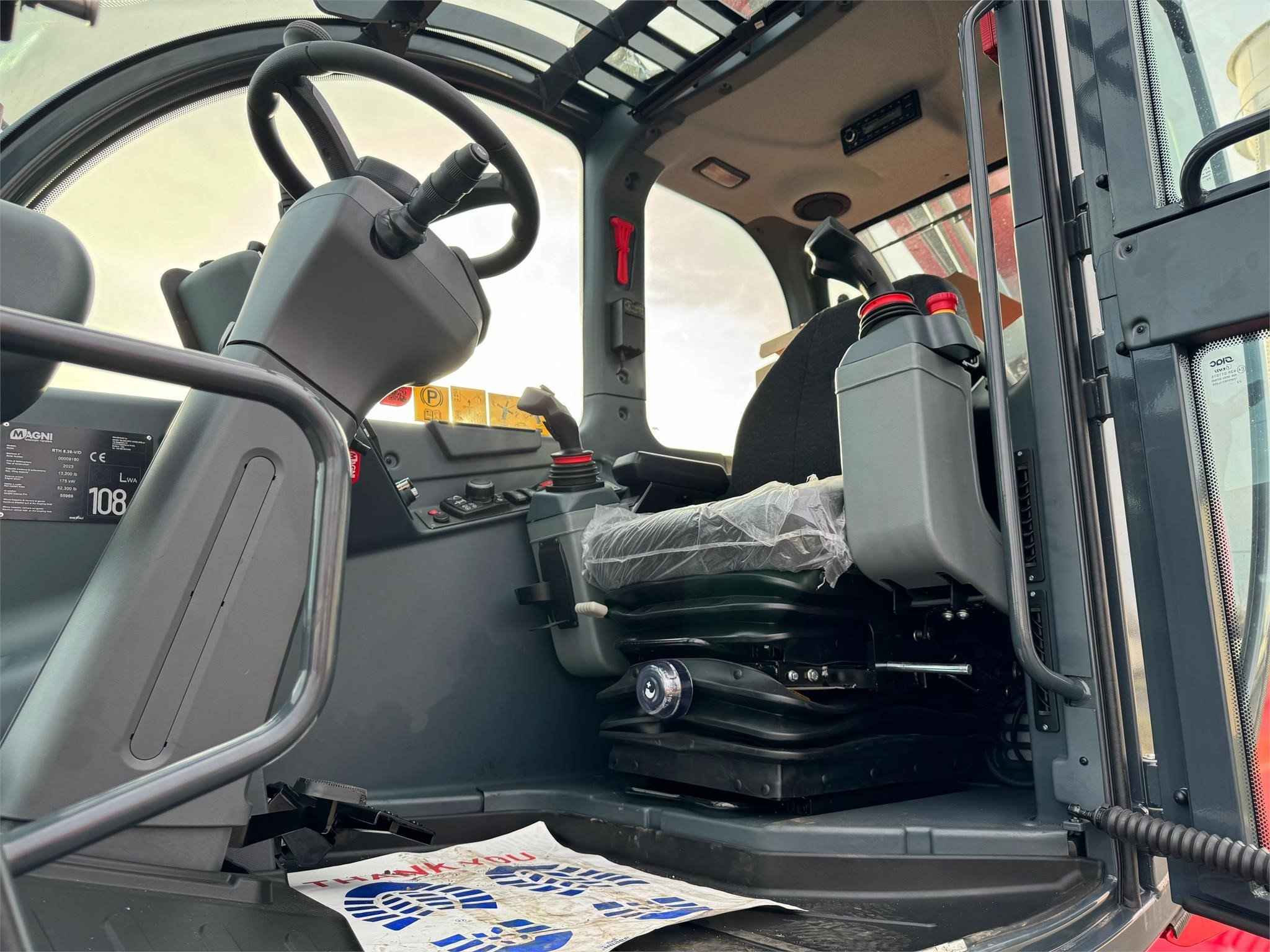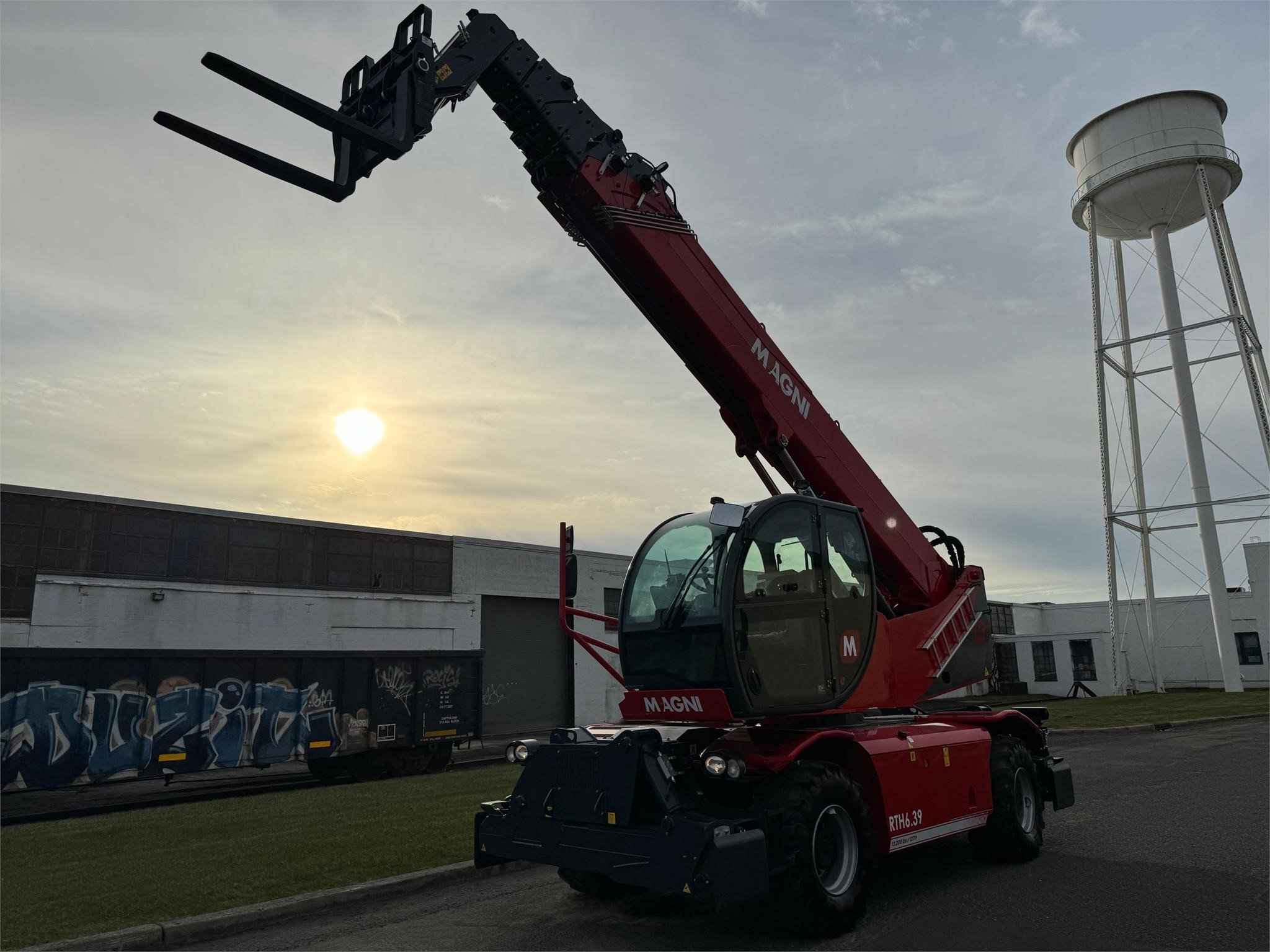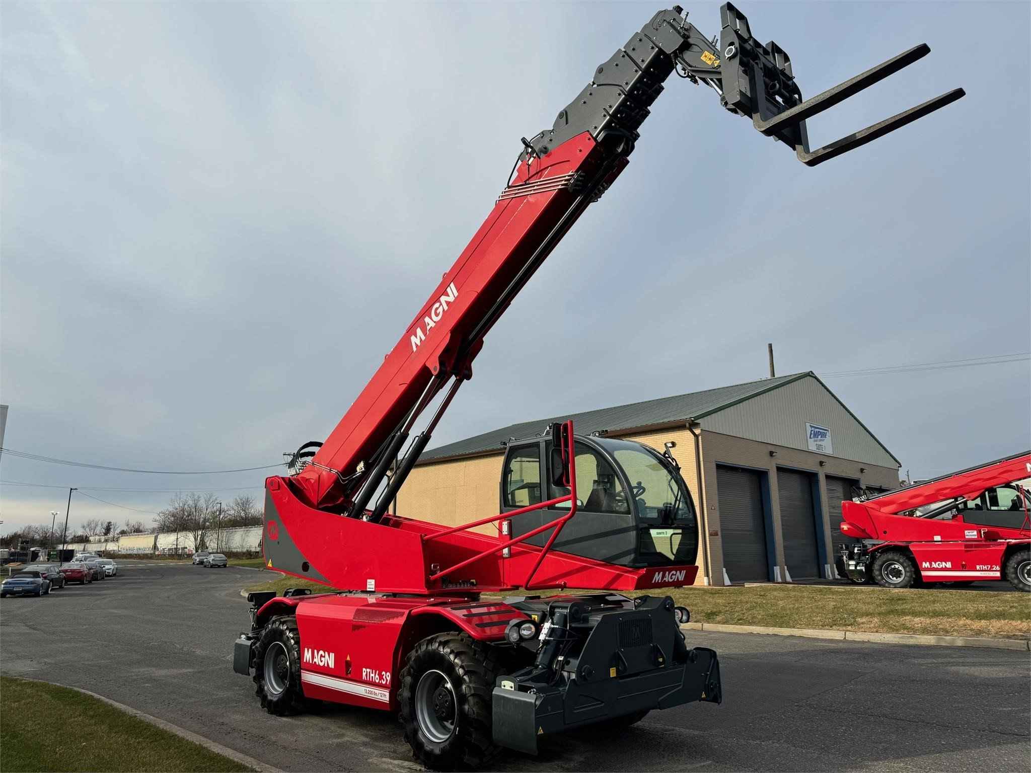 2023 Magni RTH 6.39 Stabilisers: Scissors Lifting capacity: 13,200 lbs Capacity at maximum height: 5,000 lbs Lifting height: 127' 7'' 1,531 Reach: 88' 7'' 1,063 Engine: Volvo TAD 572 VE - Tier 4f Rated power: 175 kW (238 hp) 2,300 rpm Number of gears: 2/2 Hydraulic system: 350 bar (Load Sensing) Length: 28' 3'' 339 Width: 8' 4'' 100 Ground clearance: 12'' 12 Unladen weight: 52,910 lbs Travel speed: 25 mph Rotation: 360° (continue) Climate control as standard: Yes Automatic accessory recognition: Yes Reversable fan drive: Yes Call Empire Crane today for a quote.