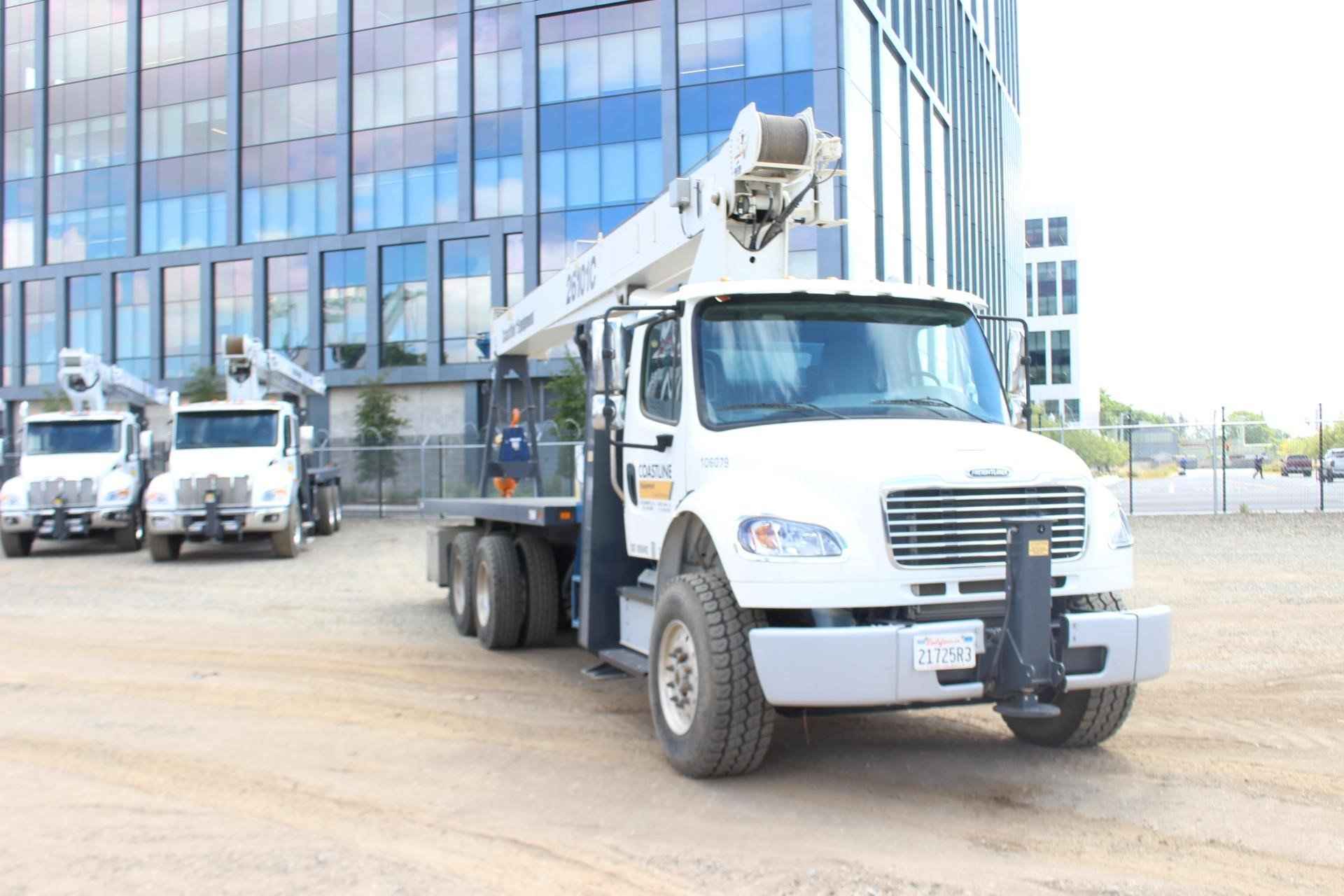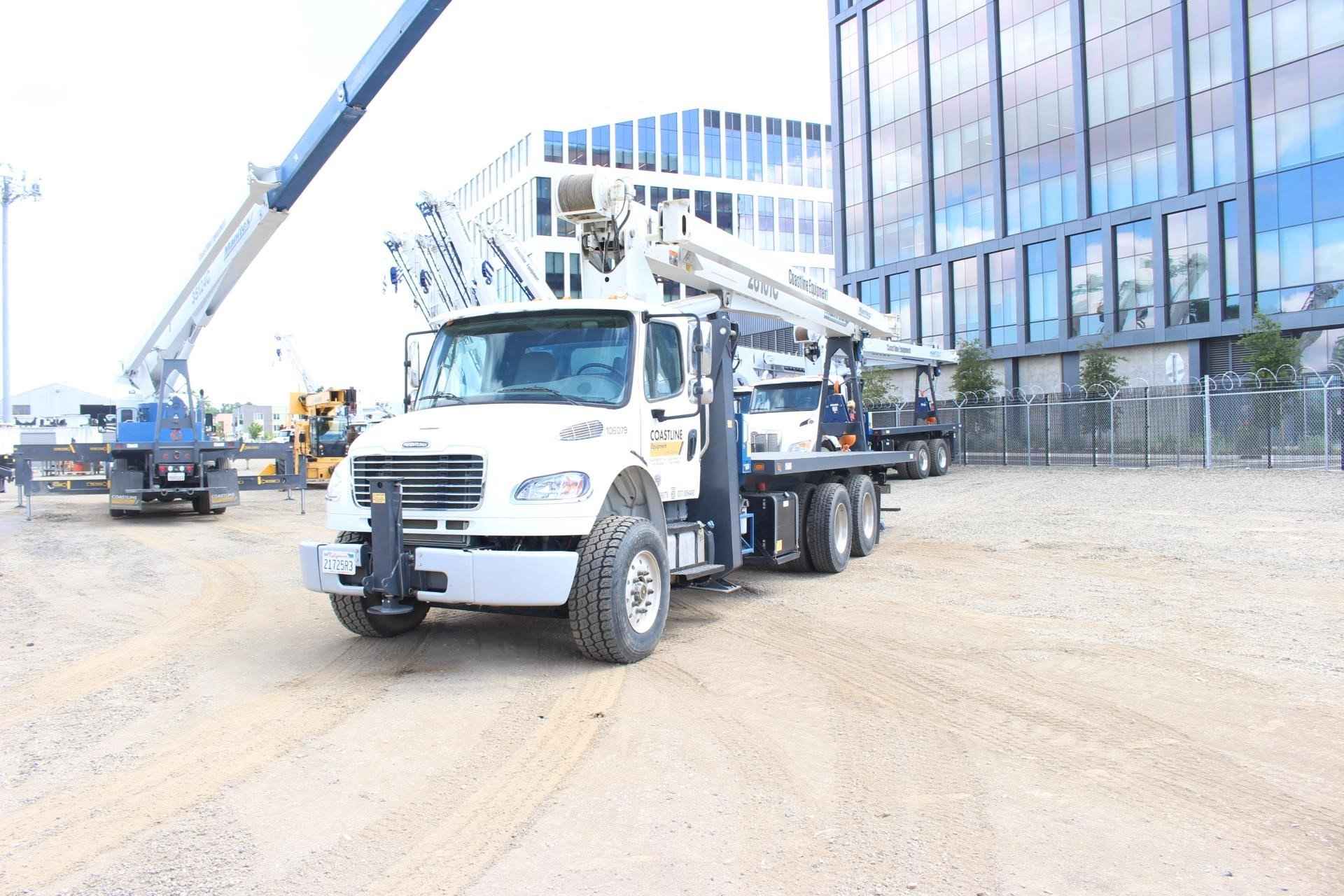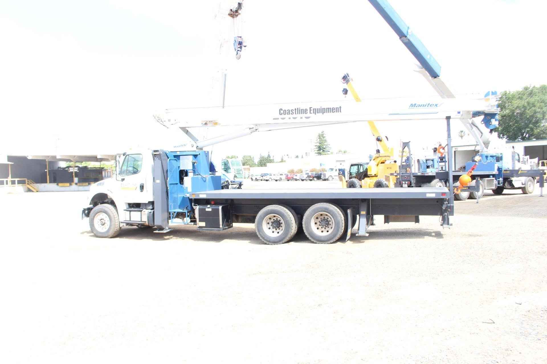 MANITEX 26101C 26 TON CRANE Standard features: 101’ Four-Section Telescopic Boom, 2-speed Hoist w/Grooved Drum, 7 Ton Hook and Ball, 3-Load Sheave Quick Reeve Boom Head, Externally Wired Anti-Two Block, Boom Hoist Cylinder, System Pressure Gauge, 372° Non Continuous Rotation, Removable Boom Rest, Engine Start/Stop, Operator’s Service/Parts Manuals, Boom Length and Angle Indicators, Function Overload Shutoff, Electronic Throttle, Bubble Level, 300’ of 9/16” Rotation Resistant Wire Rope, 70 Gallon Reservoir w/Suction Strainer & Ball Valve, Pedestal, Turret, Rotation Bearing & Swing System, Dual Operator Control Stations, Load Moment Indicator – Audio/Visual Capacity Alert w/Shutoff, Audible Outrigger /Stabilizer Motion Alarm, A-Frame Outriggers (21’6” spread width), A-frame Rear Stabilizers, Outrigger Monitoring System for verification only, Subframe for 22’ Bed, 3-Section Hydraulic Gear Pump – CCW Rotation is Standard, Signal Horn. Additional Options Included: • Radio Anti Two Block • 1 Piece Jib (101) (G/RS) – Radio A2B • 22’ Steel Bed with 1/8” thick steel thread plate • 3 Section Vane Pump clockwise rotation • Hotshift PTO • Chassis Mounted Heavy Duty Hydraulic Reservoir • 15 Ton 1-Sheave Quick Reeve Block for 2-3 part line 9/16” rope • Front Center Stabilizer • Control Valve for operation of single stabilizer, Required w/FBS • Aluminum Toolbox (36” L x 24” W x 24” H) chassis mounted MOUNTED ON 2023 FREIGHTLINER M2 106 Mounted on a 2023 Freightliner M2 106 with a Cummins L9 360 HP diesel engine, Allison 3000 RDS automatic Transmission, MFS-18-133A at 18,000 lbs. front axle, MT-40-14X 40,000 lb. tandem rear axle, Airliner 40,000 lbs. extra duty rear suspension, Single 50 gallon aluminum fuel tank, Heater and air conditioning with defrosters, full instrumentation, Full power windows, interior color Opal Gray, AM/FM/WB/USB with Bluetooth world tuner radio, Single Air Horn mounted on roof, Dual Heated Mirrors, External Stainless Steel Sunvisor, Halogen headlights and unit is painted Elite White.