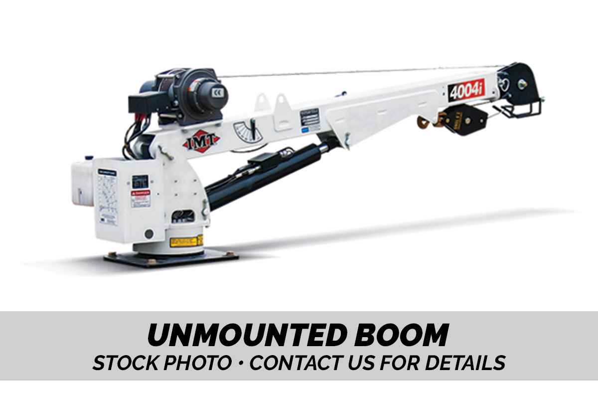 IMT 4004i electric crane When space is at a premium, the compact 4004i telescopic crane is the perfect addition to your mechanics truck fleet. This little crane can do the heavy lifting for you with a lifting capacity of 4004 lb (1816 kg) and a maximum horizontal reach of 16′ (4.9 m). The 4004i requires minimal mounting space, which helps make more room for your payload. Standard features: - Planetary winches - Non-proportional tethered remote control - Electrical operating systems - Anti-two-block protection - Overload shutdown protection Specifications - Model: 4004i (16') - Crane Rating: 18,000 ft-lb - Crane Weight: 758 lb - Max Lift Capacity: 4,000 lb - Max. Horizontal Reach: 16' 0"