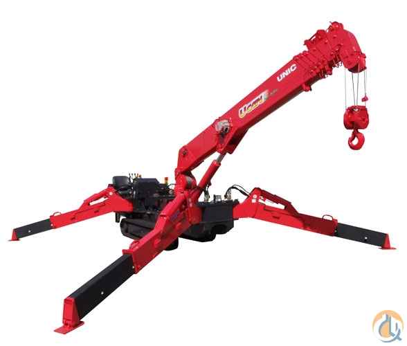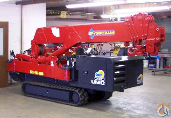 Location...Arizona. New Spydercrane Mini-Crawler by UNIC has a 55 ft. tip height (61 ft. with optional jib with searcher hook), and a capacity of 8,920 lbs. @ 8 ft. This crane will fit through a standard double-door opening. Standard equipment includes: full-function radio-remote controls, hexagonal boom, anti-two block, automatic hook stow system, and LMI-overload protection with operator's display. Available in; diesel and diesel/electric engines. Designed to work in confined areas. Call for more details.