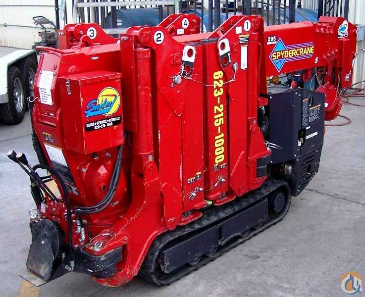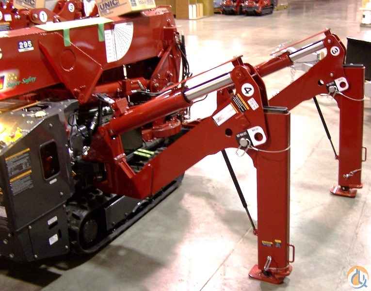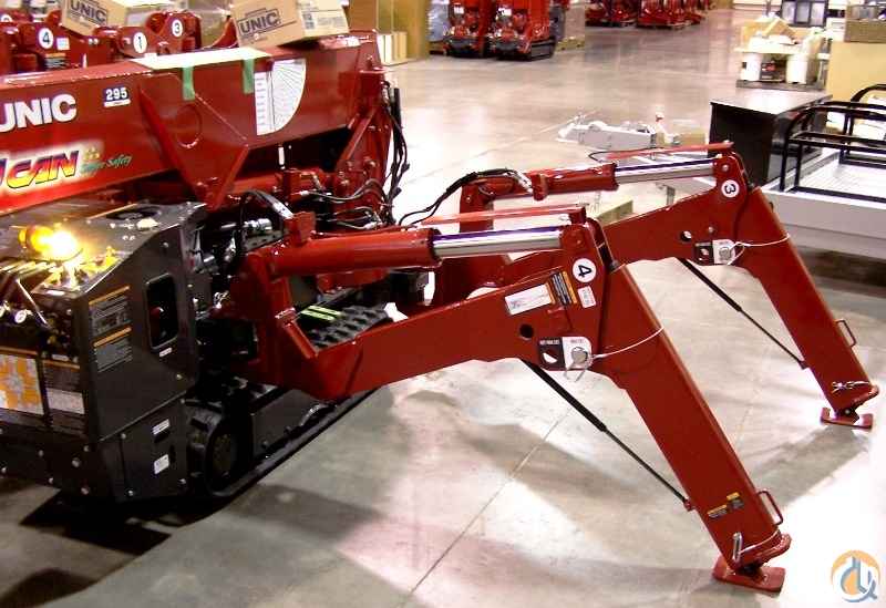 Used SPYDERCRANE URW295 Mini-Crawler by UNIC has a 31 ft. tip height and a capacity of 6,450 lbs. @ 4.6 ft. This one is gasoline and propane powered (220V Electric can be added as an option). At only 24 inches wide, this crane will fit through a standard door opening and can be moved from floor-to-floor with a standard elevator. It has a "State of the Art" computer system which includes an overload system. There are 52 possible outrigger positions to set-up in basically any confined work space. Standard equipment includes: full-function wireless radio-remote controls, turn-over-protection system, hexagonal boom for superior strength, anti-two block, self stow hook, infinate variable controls, Variable delivery piston pump for multi-function operation, cable overwinding protection, minimum wire rope stop/protection, and overload protection. Designed to work in confined areas. I also have new and used SPYDERCRANE designed trailers available.