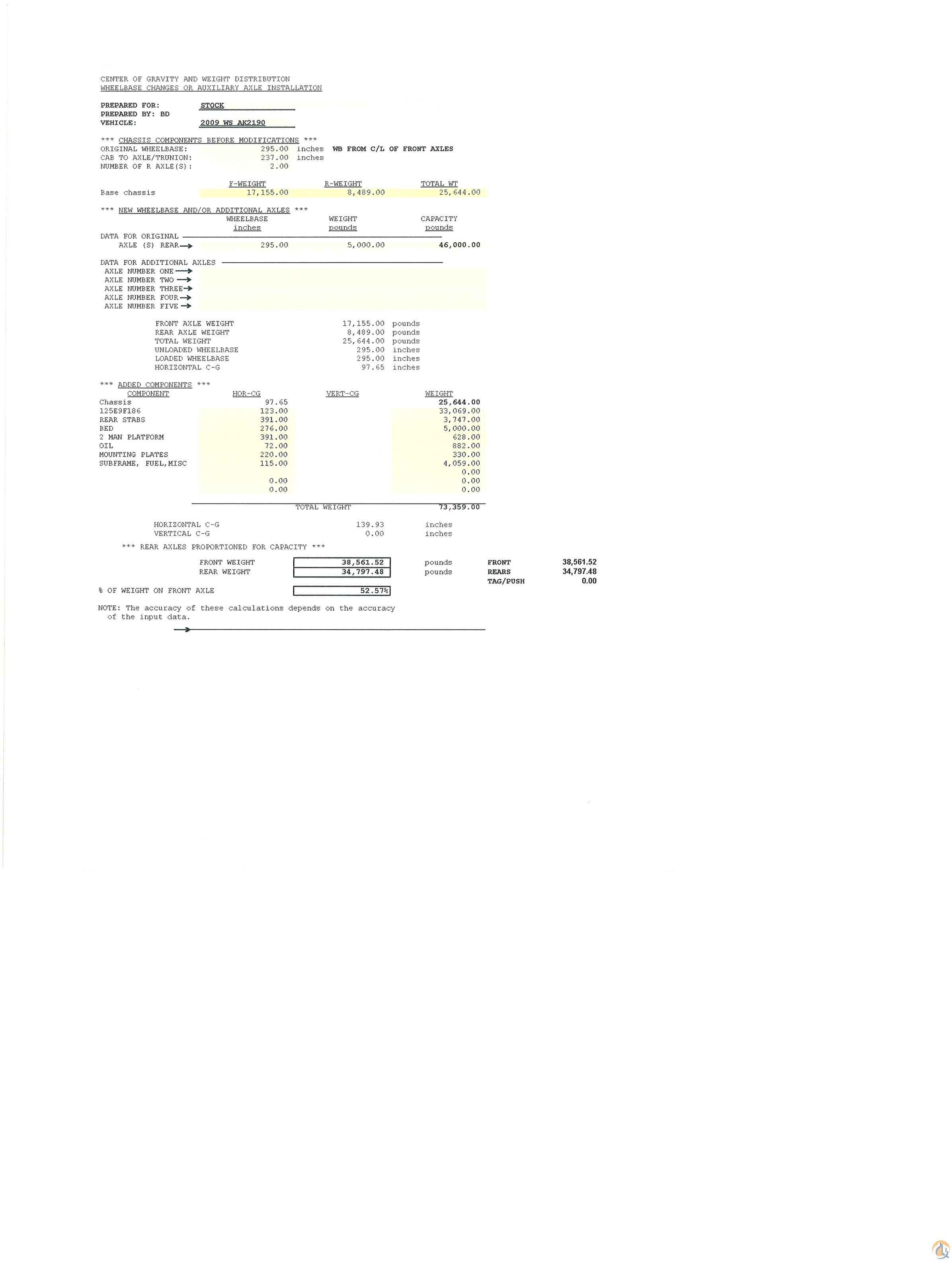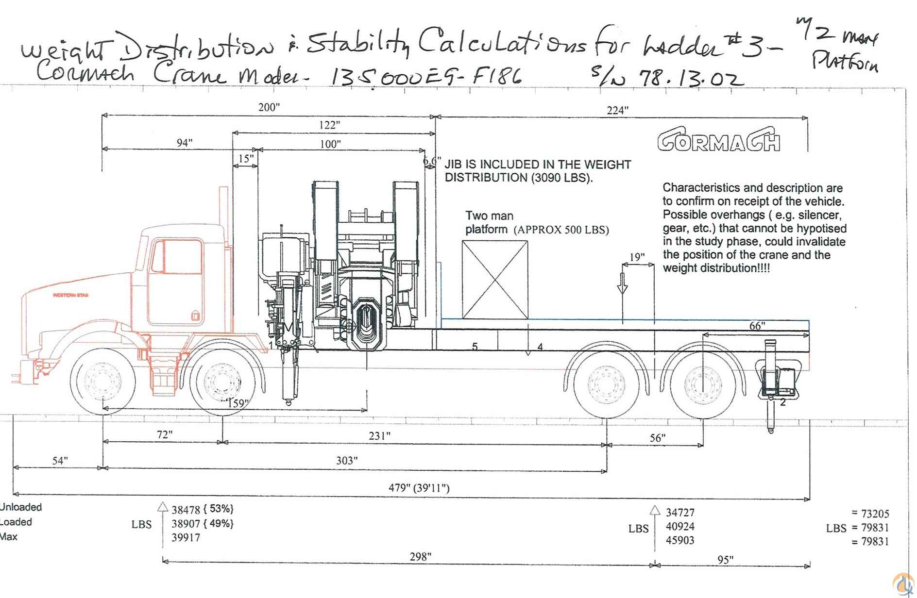 <p><strong style="line-height: 115%;"><span style=" line-height: 115%;Arial","sans-serif";Times New Roman"; border: none windowtext 1.0pt; padding: 0in;">Boom Description:</span></strong><span style=" line-height: 115%;Arial","sans-serif";Times New Roman"; border: none windowtext 1.0pt; padding: 0in;"> </span><span style=" line-height: 115%; border: 1pt none windowtext; padding: 0in;">Main boom with 9 hydraulic extensions, Completely foldable hydraulic jib with 6 extensions, Sunfab variable displacement, load sensing, self-compensating piston pump,</span><span style=" line-height: 115%; border: 1pt none windowtext; padding: 0in;"> </span><span style=" line-height: 115%; border: 1pt none windowtext; padding: 0in;">Fully proportional Hetronic radio remote control system with Danfoss control valve, </span><span style=" line-height: 115%; border: 1pt none windowtext; padding: 0in;"> </span><span style=" line-height: 115%; border: 1pt none windowtext; padding: 0in;">Main control valves located on the lower kingpost, for emergency use. Electro-hydraulic overload protection system. Integrated full sub-frame. Oil cooler. </span><span style=" line-height: 115%; border: 1pt none windowtext; padding: 0in;"> </span><span style=" line-height: 115%; border: 1pt none windowtext; padding: 0in;">Main base-mounted hydraulic outriggers with 33’2” span. Auxiliary, hydraulic under-frame outriggers with 26’6” span. Four (4) oversize sand pads and brackets.</span></p> <p class="MsoNormal" style="line-height: 115%; vertical-align: baseline; "><strong><span style=" line-height: 115%;Arial","sans-serif";Times New Roman"; border: none windowtext 1.0pt; padding: 0in;">Unused 2009 Model 4900SA Twin-Steer Truck Chassis </span></strong><strong><span style=" line-height: 115%; border: 1pt none windowtext; padding: 0in;">VIN: 5KKMALCK39PAK2190 Western Star Model 4900SA</span></strong></p> <p class="MsoNormal" style="line-height: 115%; vertical-align: baseline; "><span style=" line-height: 115%; border: 1pt none windowtext; padding: 0in;"><span style=" line-height: 115%; background-">Twin Steer; DDC 60-14.0L 425 hp diesel engine; Eaton Fuller FR0-I4210C manual transmission; 40,000 lb. twin-steer front axles; 46,000 lb. tandem rear axles; 120 gal. LH aluminum fuel tank; aluminum disc front and rear wheels; A/C; tilt wheel; heated mirrors; AM-FM-CD weather band radio; power windows & door locks; and real wood panels. L.E.D. lights; mud flaps; 16’ D structural steel flatbed body with 3/16” TPX steel deck; 6 under-body load binders rear ICC safety bumper. (2) 48” and (2) 24” under-body toolboxes.</span> </span></p> <p class="MsoFooter" style="text-align:center" align="center"><strong><span lang="ES-CO">For additional information Contact:</span></strong></p> <p class="MsoFooter" align="center"><span style="text-indent: -0.25in; "><strong><span style=" background- background-position: initial initial; background-repeat: initial initial; "> David Tobón +1 330 421 3003 </span></strong></span><span style="text-indent: -0.25in; "><strong><span>dtobon@ironplanet.com</span></strong></span></p>