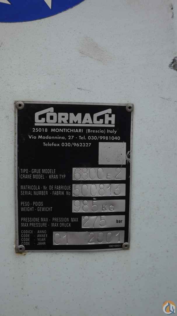 2001 CORMACH 6800E2 KNUCKLEBOOM; 3 TON; PICKS 5,852 LB AT 6'7'' SIDE REACH; PICKS 1,760 LB AT 21'8'' MAX SIDE REACH; 2 HYD EXT ON OUTER BOOM; 2 PULLOUT OUTRIGGERS; (HAS HYD TANK, NO PUMP).