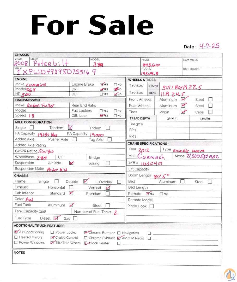 This is your opportunity to purchase a like new 2012 Cormach Model 71000E11ASC 80’5” Knuckle Boom Truck.