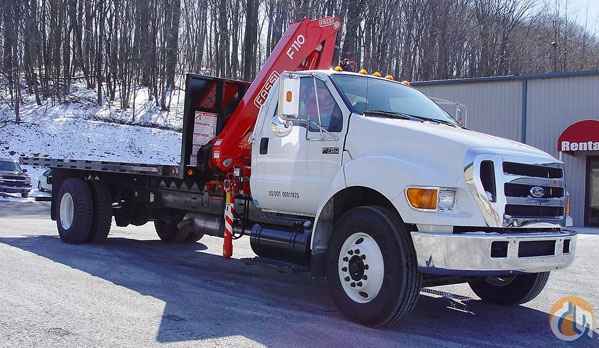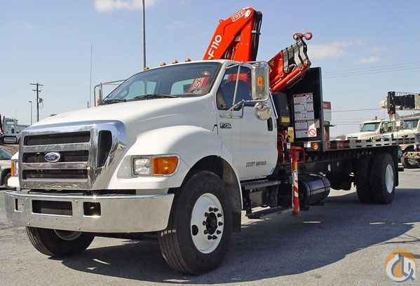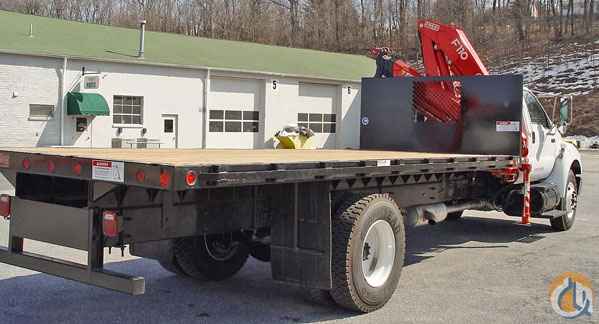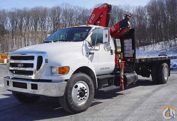 Location...New York. S/N...5172. Equipped with 2 hydraulic knuckles, 4 hydraulic extensions, standard outriggers, steel sub frame mounting, super duty 20' bed with wood floor, 1488# @ 39'6', 390 degree rotation, mounted on a 2006 Ford F750 chassis, vin 3FRXF75W67V466278, XLT trim package, CAT C7 diesel engine, 300 HP, Allison 6 speed automatic transmission, 33,000 GVW, 12,000# front axle, 21,000# rear axle, 11R22.5 tires, air conditioning, AM/FM, CD player, power windows, power locks, heated mirrors white in color, 4,982 miles.