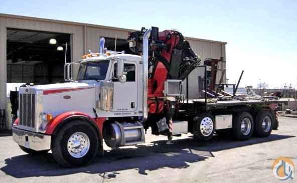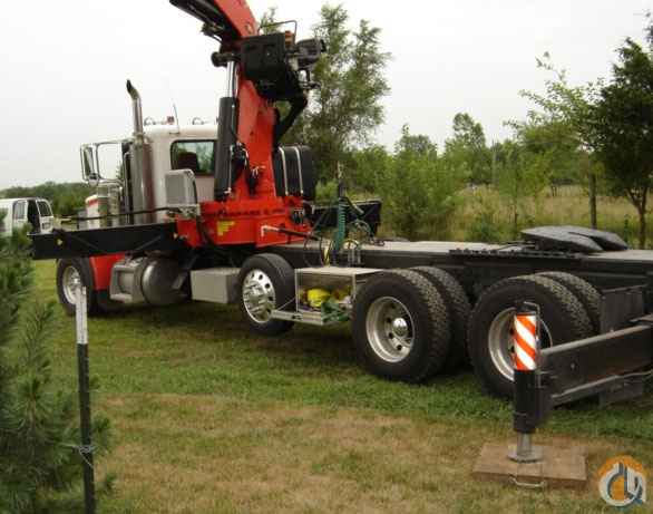 Location...Wisconsin. 2007 Peterbilt 357 with behind cab, tractor-mounted 60 metric ton Fassi F600AXP26L414 - has fly jib, top seat controls AND radio remote controls, optional jib tip rotator and more. This crane (without jib) horizontally lifts 35,000 pounds at approx. 10'; it lifts over 6,000 pounds at 53' 6" and with jib it reaches over 85 feet - horizontally! With jib installed, it can lift more than 3,500 pounds at 60'; approx 2,800 pounds at 68 feet, and over 2,000 pounds horizontally at its maximum reach of 85' 2" — or 85' 9" depending on which load chart you look at. The 2007 Peterbilt 357 truck has a CAT C15 475hp engine with pre-emissions engine and less than 50,000 miles; a Fuller RTLO-18918B transmission, dual locking differentials, A/C, jake brake, 20,000# front axle, 46,000# rear axle, a pusher axle and a 5th wheel tractor package. Unit has aluminum wheels, aluminum tool boxes, and also includes a detachable 18' flatbed trailer built specifically for this unit. Highly versatile Owner Operator's custom designed rig. Please call Megan at 877-352-7263 for more details and see our website at www.cranesandbuckets.com Thank you.