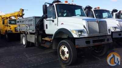 Hiab 085-E-2, 8,820 Lb Hydraulic Knuckle Boom Crane s/n 2918, with 24' working height, 3 section hyd boom & dual controls, mounted behind cab on 2003 International 7400 4x4 Flatbed Truck, DT466 diesel, Auto, A/C, with 14' Galv. body, (Exempt from Odometer Disclosure - Reads 74,515 miles) - More Information on this Equipment
