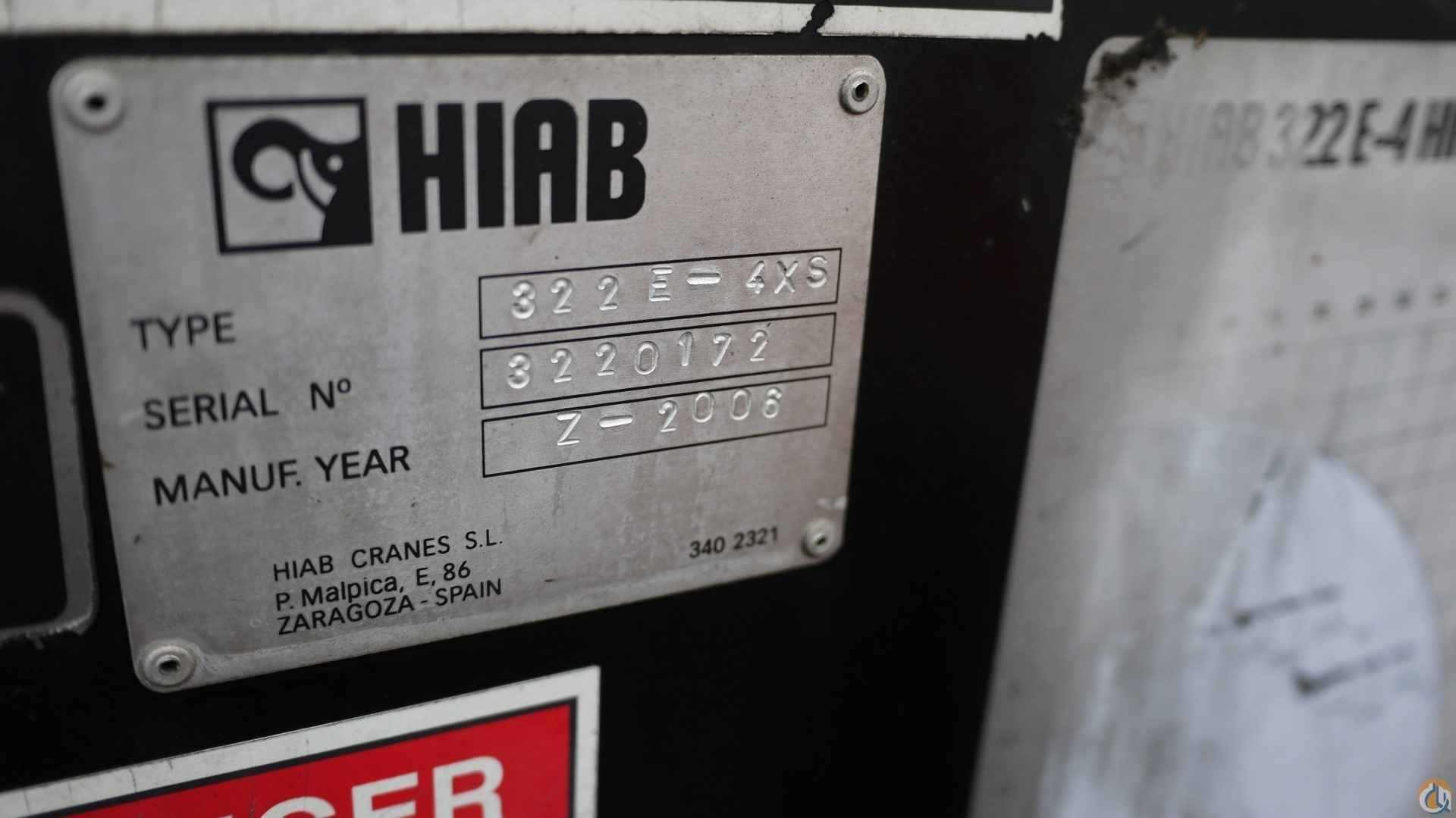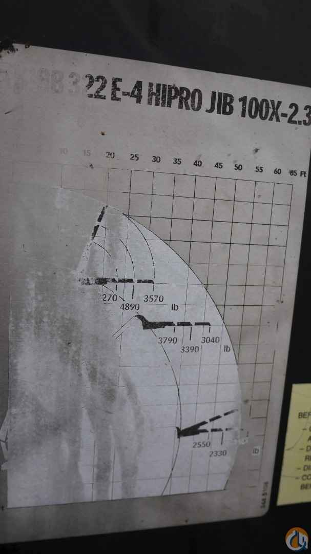 2006 HIAB 322E-4XS UNMOUNTED KNUCKLEBOOM; 10 TON; PICKS 20,720 LB AT 10'3'' SIDE REACH; PICKS 2,110 LB AT 57' MAX SIDE REACH; 4 HYD EXT ON OUTER BOOM FLY JIB W/ 2 HYD EXT; LMI SYSTEM; RADIO REMOTE CONTROLS; 2 HYD OUT DOWN OUTRIGGERS; HAS HYD TANK, TRANSMITTER & ALL ELECTRONICS. NO PUMP.