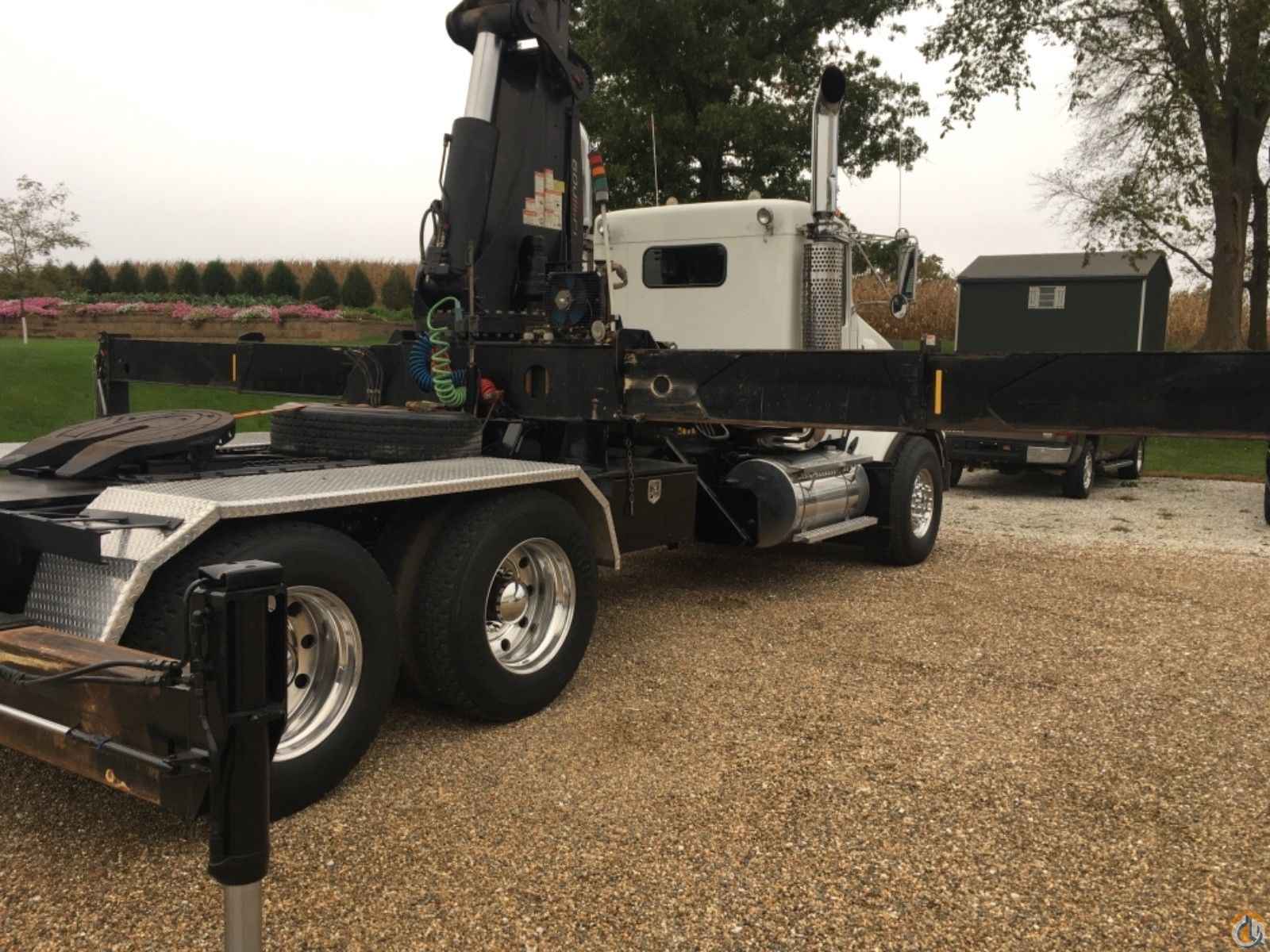 2005 Kenworth T800, Caterpillar C15 engine, Eaton Fuller 13 spd, Double frame, 8 bag A/R susp, 18736 lb frt, 46000 lb rears, 224 in. WB, 2006 Hiab XS 600EP-5 knuckleboom crane, 48' 2" max lift height and 34980 lbs max lift weight. Wireless Remote Control. 315,000 miles. Vin 1XKDDB0X95J090026