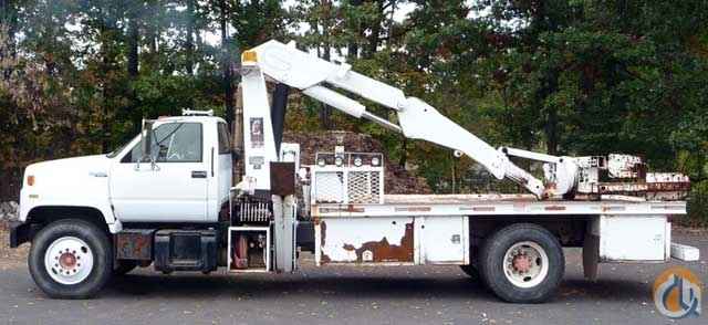 <p>1994 GMC TOPKICK; CAT 3116 6 CYL DIESEL (215 HP) 5 SP; P/S; A/B; 11R22.5 TIRES; 32,760 LB GVW. 7 TON IMT KNUCKLEBOOM / TIRE CRANE 1216; PICKS 14000 LB AT 7’ SIDE REACH; PICKS 8000 LB AT 16’2” MAX SIDE REACH; 1 HYD EXT ON OUTER BOOM; TIRE HANDLER ATTACHMENT; 2 OUTRIGGERS; HYD DRIVEN AIR COMP; 16’ STEEL FLATBED.</p>