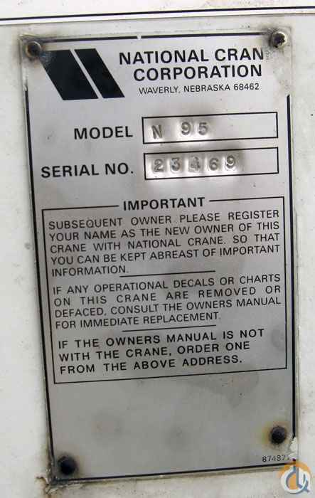 S/N...23469. NATIONAL N-95 WITH 5-SECTION BOOM (39') COMES WITH PUMP, NO PTO, AND NO TANK.