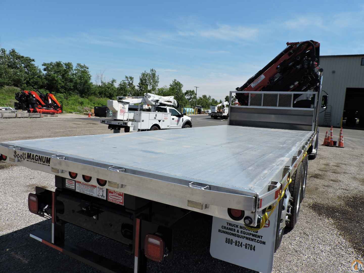 - 22’ x 102” aluminum flatbed with underside sliding winch track with seven 4” straps and hooks