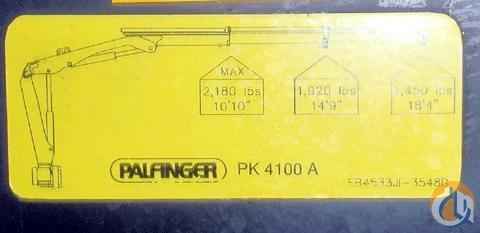 <p><strong>Location...California. S/N...200003185. </strong>I have a NEW Palfinger PK4100A Crane. It has a rating of 28,750 ft./lbs. It has a dead weight of about 1150#. Crane will lift 2150# @ 10', 2,000# @ 15', 1500# @ 19'. Two stage hydraulic boom extension to 19' total outreach. 368 degree hydraulic rack & pinion rotation. Dual control stations, Dual manual pull-out, hydraulic up/down outriggers with additional manual drop adjustment. Pump NOT included at this price. Mounting bolts included. This is a NEW CRANE with FULL FACTORY WARRANTY. THIS CRANE IS UNINSTALLED - TRUCK IN PHOTOS NOT INCLUDED. <br /><br /></p>