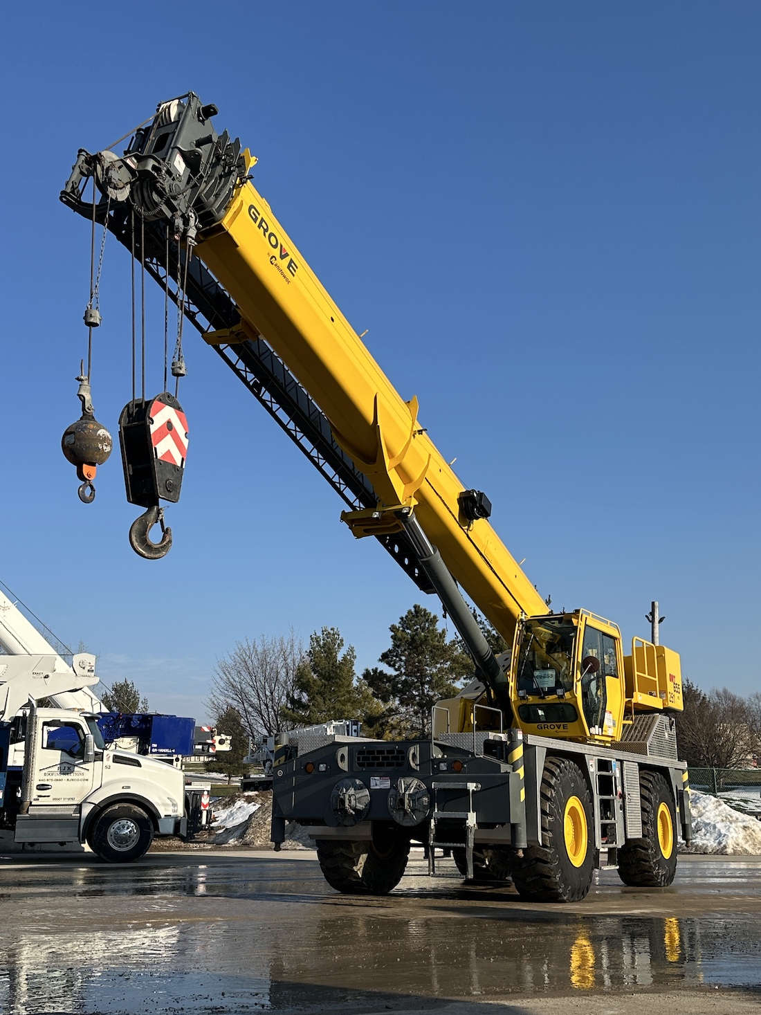 Exact Crane stocks new and used hook blocks, headache balls, jibs, boom sections, crane pads, ground protection mats, all-in-one power systems, man baskets, pallet forks, self-dumping bins, concrete buckets, material baskets, camera systems, winches, tool boxes, lubricants, greases, & more. Visit our website or contact the Exact Crane team for more information or specific inquiries.