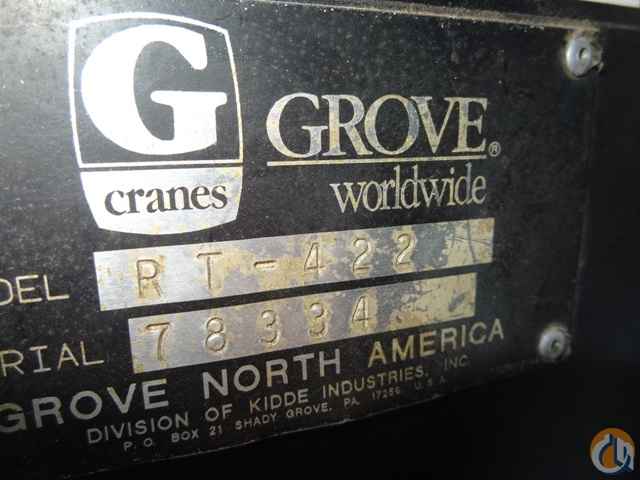 <p><span style="text-align: justify;">Unit #62215 1993 GROVE Model RT422, 22 Ton Hydraulic Rough Terrain Crane, s/n 78334, powered by Cummins 4 cylinder diesel engine and 3 speed powershift transmission, equipped with 27’-70’ 3-section hydraulic boom, 25’-43’ lattice telescopic swing-away jib, main and auxiliary hoists, PAT DS350GW LMI system, joystick controls, (4) hydraulic outriggers, and 17.5-25 tires. In good condition with good tires. (Meter Reads 2,086 Hours-12,086 Actual Hours)</span></p> <p class="MsoNormal" style="text-align: justify;"><strong>At time of inspection-Crane Disassembled For Repair: Internal Boom Scope Cylinder Rebuilt; Rotec Rebuild In Progress; After Repairs Are Complete Crane Will Be Re-Assembled and Painted) (TN).</strong></p>