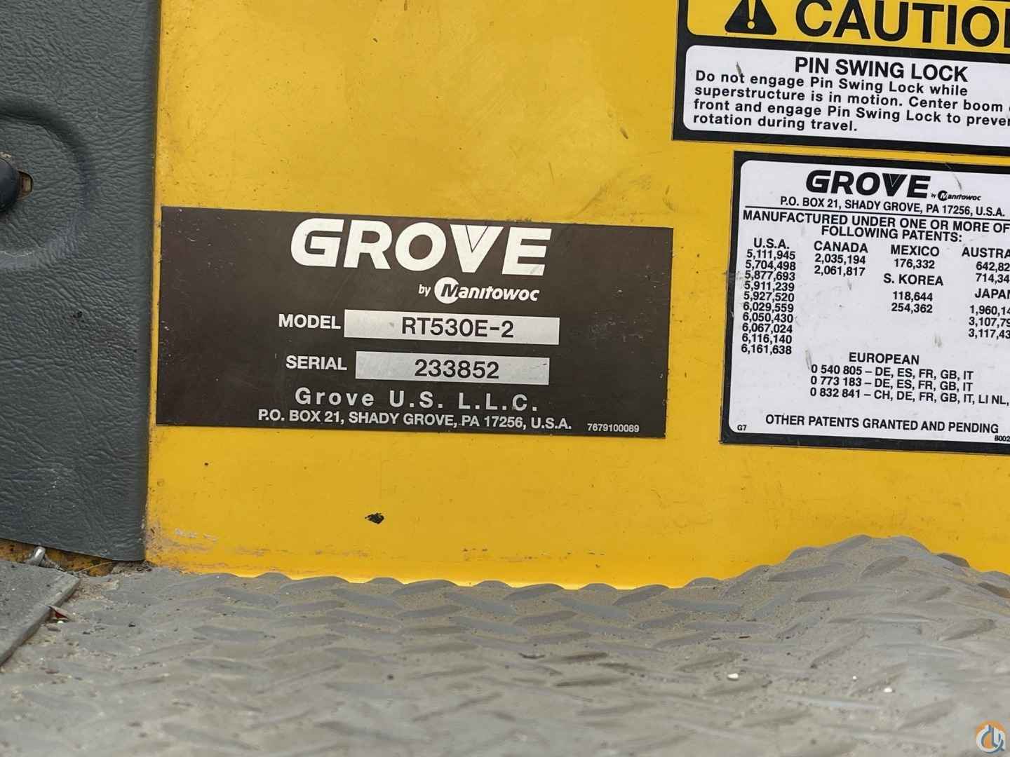 2013 Grove RT530E-2 Rough Terrain Crane, 30 ton capacity, 95' boom, 26' - 45' jib, Cummins engine w/ 6,250 hrs, A/C cab, single hoist, block & ball