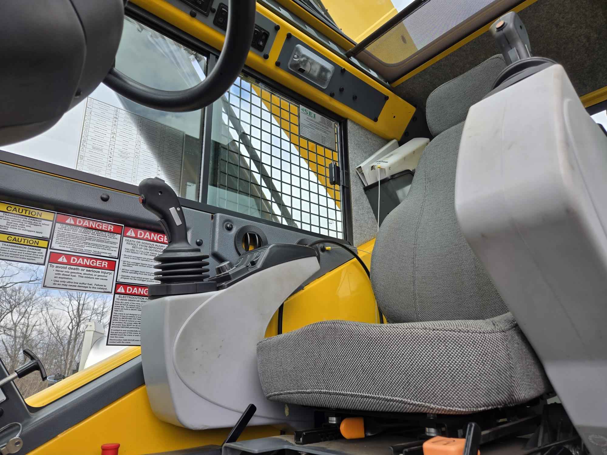 40 Ton Capacity, 32 – 102 ft. Full Power Boom, 2 Stage Jib 26 – 45 ft. 154 ft. Max Tip Height. 33 Ton Three Sheave Hook Block, 7.5 Ton Ball. Aux. Hoist. 164 HP Cummins QSB 6.7L Tier 4F. 360 Degree Swing Lock. Auxiliary lighting and Convenience Package. Cab-controlled Cross Axle Diff Locks. Heat & A/C.