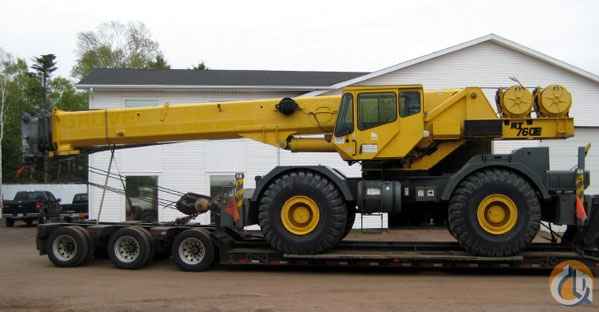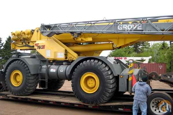 Location...Prince Edward Island, Canada. S/N...221838. 60 ton Grove RT 760E. S/N 221838. 110' power boom with 33' - 56' offsettable swingaway jib. PAT graphic LMI with light bar. Auxiliary winch. A/C. 360 degree NYC style positive swing lock. Cummins 5CT8.3 diesel engine. 29.5 x 25-28 P.R. Hi biply tires.