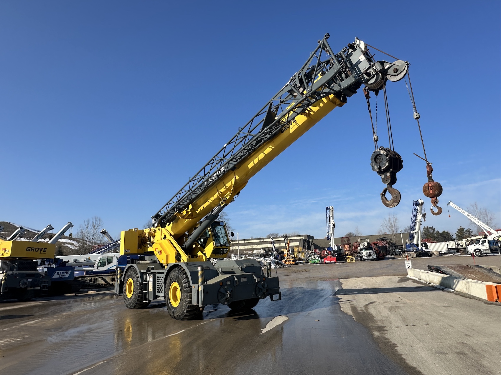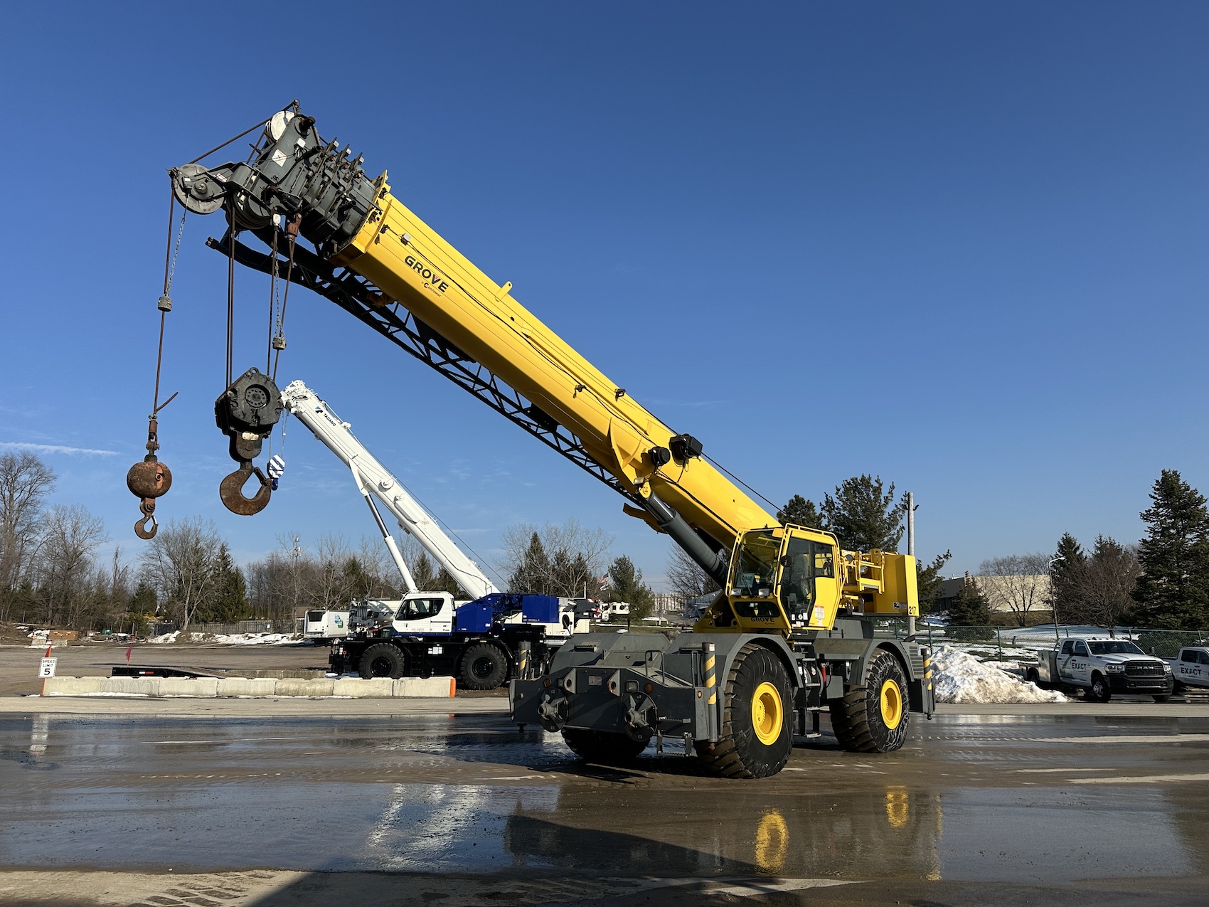 Exact Crane stocks new and used hook blocks, headache balls, jibs, boom sections, crane pads, ground protection mats, all-in-one power systems, man baskets, pallet forks, self-dumping bins, concrete buckets, material baskets, camera systems, winches, tool boxes, lubricants, greases, & more. Visit our website or contact the Exact Crane team for more information or specific inquiries.
