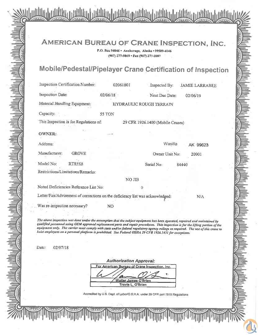 1997 Grove RT855B Rough Terrain Crane