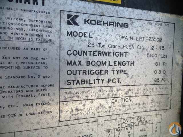 <p><!--[if gte mso 9]><xml> <o:DocumentProperties> <o:Template>Normal</o:Template> <o:Revision>0</o:Revision> <o:TotalTime>0</o:TotalTime> <o:Pages>1</o:Pages> <o:Words>100</o:Words> <o:Characters>573</o:Characters> <o:Lines>4</o:Lines> <o:Paragraphs>1</o:Paragraphs> <o:CharactersWithSpaces>703</o:CharactersWithSpaces> <o:Version>11.512</o:Version> </o:DocumentProperties> <o:OfficeDocumentSettings> <o:AllowPNG/> </o:OfficeDocumentSettings> </xml><![endif]--><!--[if gte mso 9]><xml> <w:WordDocument> <w:Zoom>0</w:Zoom> <w:DoNotShowRevisions/> <w:DoNotPrintRevisions/> <w:DisplayHorizontalDrawingGridEvery>0</w:DisplayHorizontalDrawingGridEvery> <w:DisplayVerticalDrawingGridEvery>0</w:DisplayVerticalDrawingGridEvery> <w:UseMarginsForDrawingGridOrigin/> </w:WordDocument> </xml><![endif]--> <!--StartFragment--></p> <p class="Kurtis" style="text-align: justify;"><span style="font-size: medium; font-family: verdana, geneva;">1981 Lorain LRT 2300M, 25 Ton, CB&J# 429, 32’-81’ 3 Section Self-Proportioning Boom With Quick Reeve Boom Head, 32’-49’ Swing Away, Tele Jib, Main And Auxiliary Winch, Two Speed, Anti Two-Block With 5/8" Wire Rope, Hook Ball, 9’ Lorain Carrier 4x4 Drive With Rear Axle Disconnect, Detroit Diesel Engine 220 Hp, Clark Model R-28620 Powershift Transmission, 6 Speed With Full Reversing, Front Tires: 23.5-25 With 30% Remaining, Rear Tires: 23.5-25 With 30% Remaining, Toolbox, Working Lights On Boom, <strong>Cosmetic Condition:</strong> Paint Is Good, Minor Rust, Glass is Good, Small Tear in Seat.</span></p> <p class="Kurtis" style="text-align: justify;"> </p> <p class="Kurtis" style="text-align: justify;"> </p> <p class="Kurtis" style="text-align: justify;"> </p> <p class="Kurtis" style="text-align: center;"><span style="font-size: xx-large;"><strong><span style="font-family: verdana, geneva;">SOLD</span></strong></span></p> <p><!--EndFragment--></p>