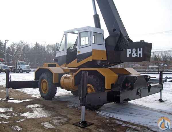 Location...Illinois. 1980 P&H 18 TON OMEGA ROUGH TERRAIN CRANE -DETROIT DIESEL THAT ALWAY STARTS -REBUILT MAIN BOOM CYLINDER AND OUTRIGGER CYLINDERS ALL WITHIN THE LAST FEW YEARS -4X4 WITH CRAB STEER -NEW STEEL SHEAVES W/ NEW 9/16" CABLE -NEW PAINT (OLD PAINT WAS IN GOOD SHAPE BUT FADED) -20' LATTICE SIDE FOLD JIB -CRANE HAS HAD LITTLE USE SINCE WE PURCHASED IT IN LATE 80'S -ALWAY HAS BEEN VERY RELIABLE