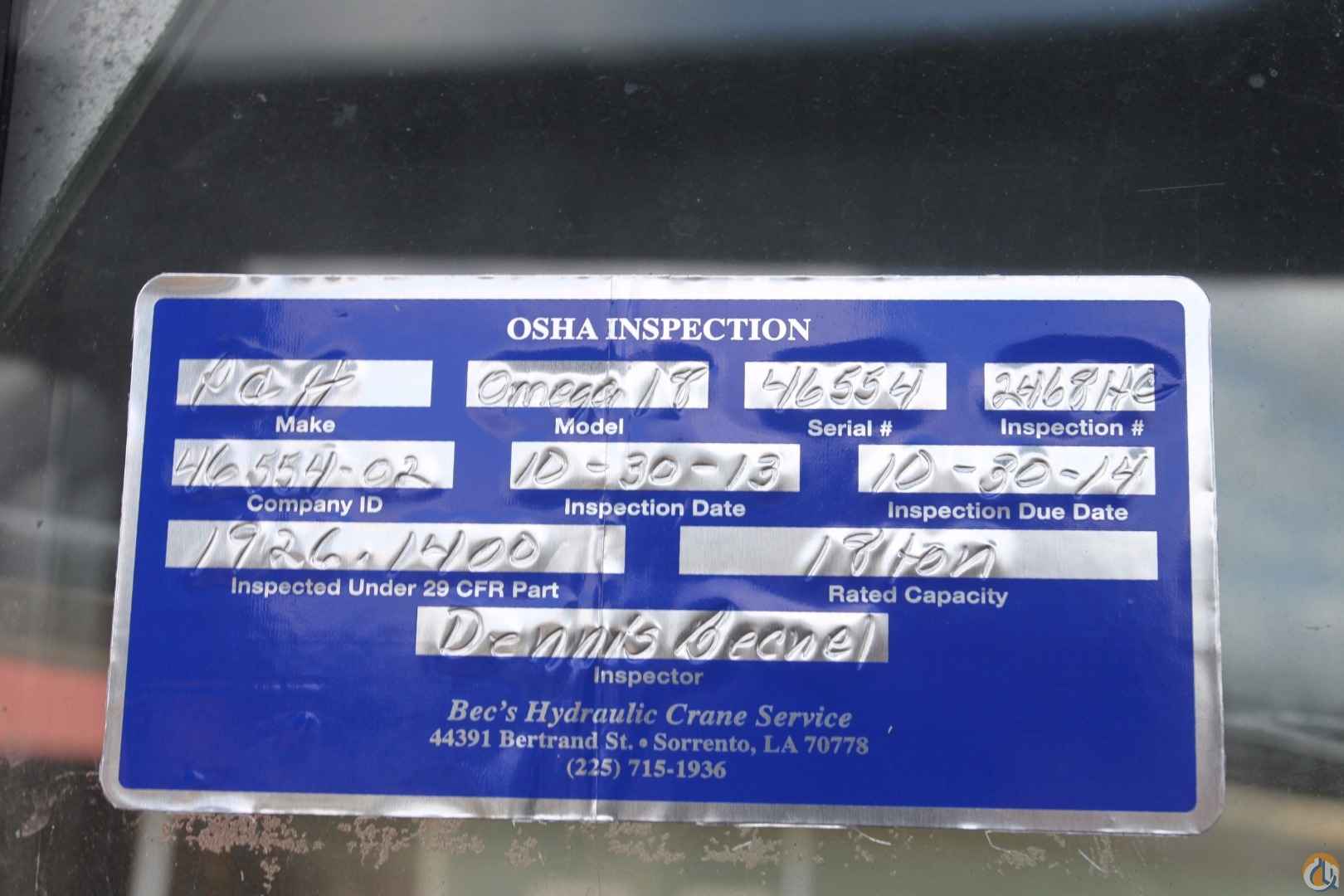 18 Ton Capacity, Swing Cab, 3 Section Boom, Johnson Headache Ball & Johnson 25 Ton Block , Outriggers (Can be controlled from outside), Detroit Engine, Air over Hydraulics, 175ft 3/4inch Stainless Steel Cable, Spare Parts(Starter, Alternator, etc) and Manual.