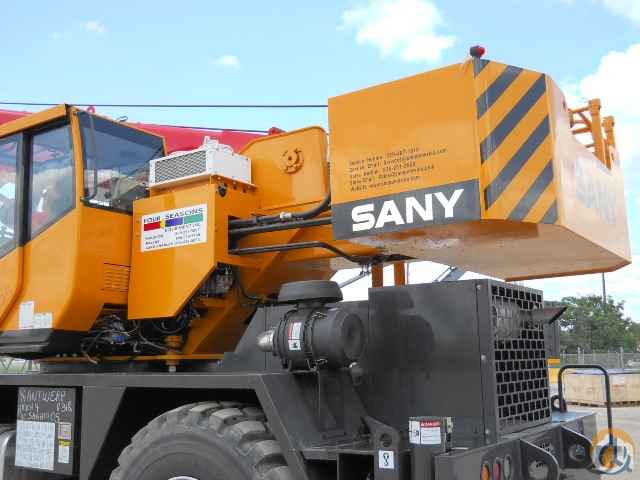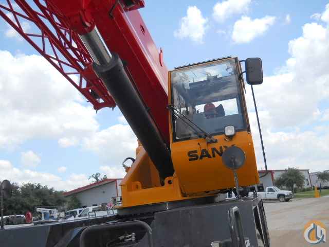 Large Sany designed display with 2 interactive screens - Crane Mode & Drive Mode. Deluxe six- way adjustable operator's seat. Sound and weather insulated for comfort. Large glass area and opening top hatch provide optimum visibility. Tinted safety glass throughout. Armrest mounted pilot operated hydraulic joy stick control levers for swing, boom lift, main and aux hoist functions; foot control pedals for swing brake, boom telescope, engine throttle and travel brake. Complete instrumentation, circuit breakers, environmentally sealed rocker switches, 360 degree house lock, heater/air conditioner & 12 V outlet.