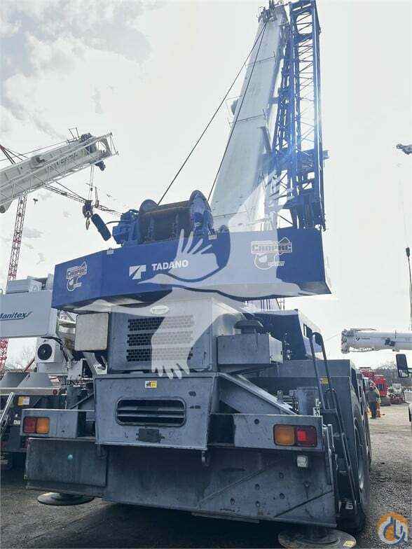 ONE USED 2014 TADANO GR750XL ROUGH TERRAIN CRANE, C/W: SN: 548699 75 US ton capacity 36.1’ - 141.1’ five-section boom 33.1’ - 58.1’ bi-fold lattice jib Auxiliary lifting sheave Anti- Two Block Main & Auxiliary Hoists Drum rotator indicator Boom angle indicator Hot water cab heater & A/C 4 x 4 x 4 drive/steer 6.2 ton headache ball 75 ton 7-sheave hook block Approx. hrs 7276 Crane will have new 10 year NDT Engineer Inspection Certificate