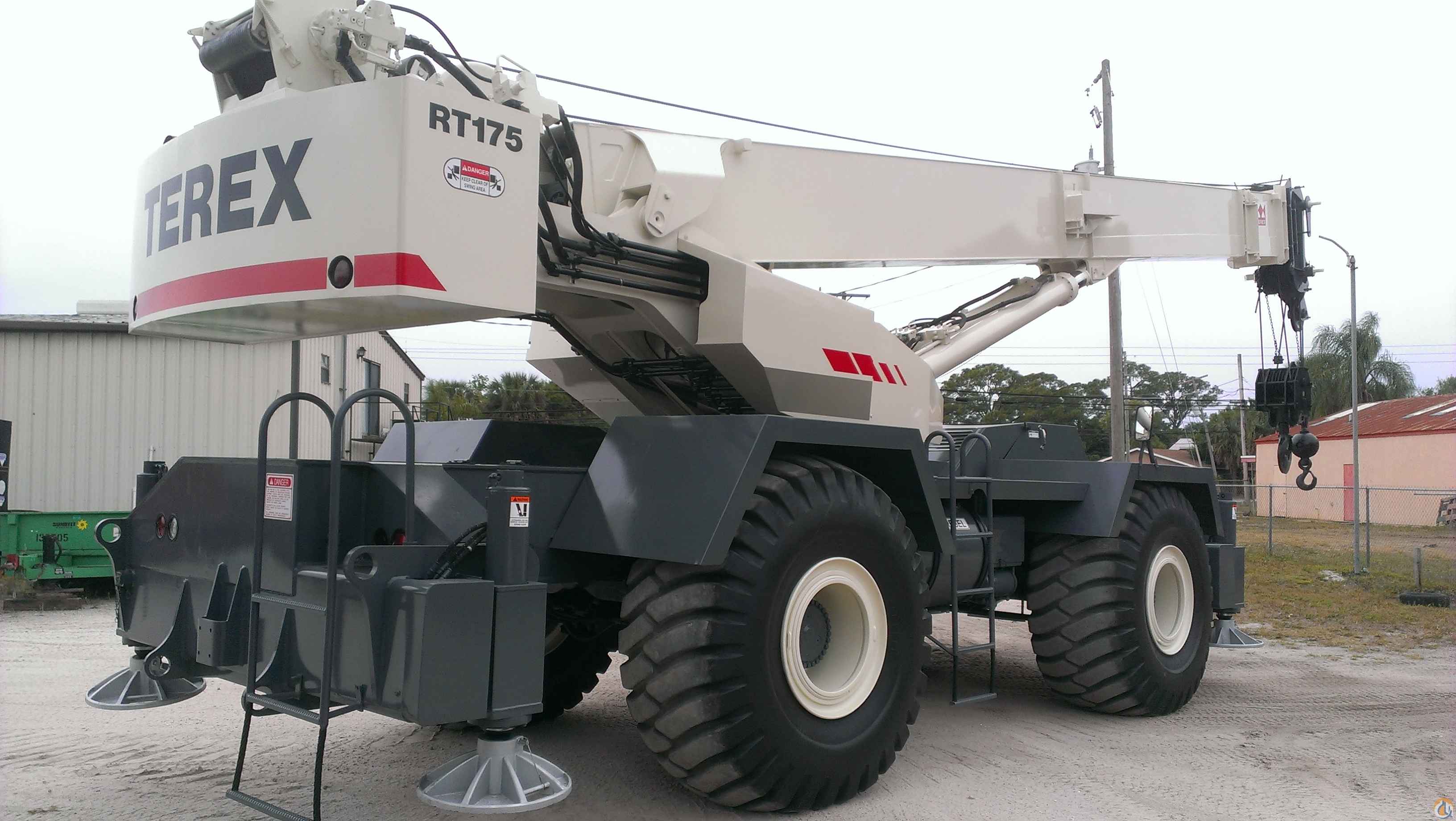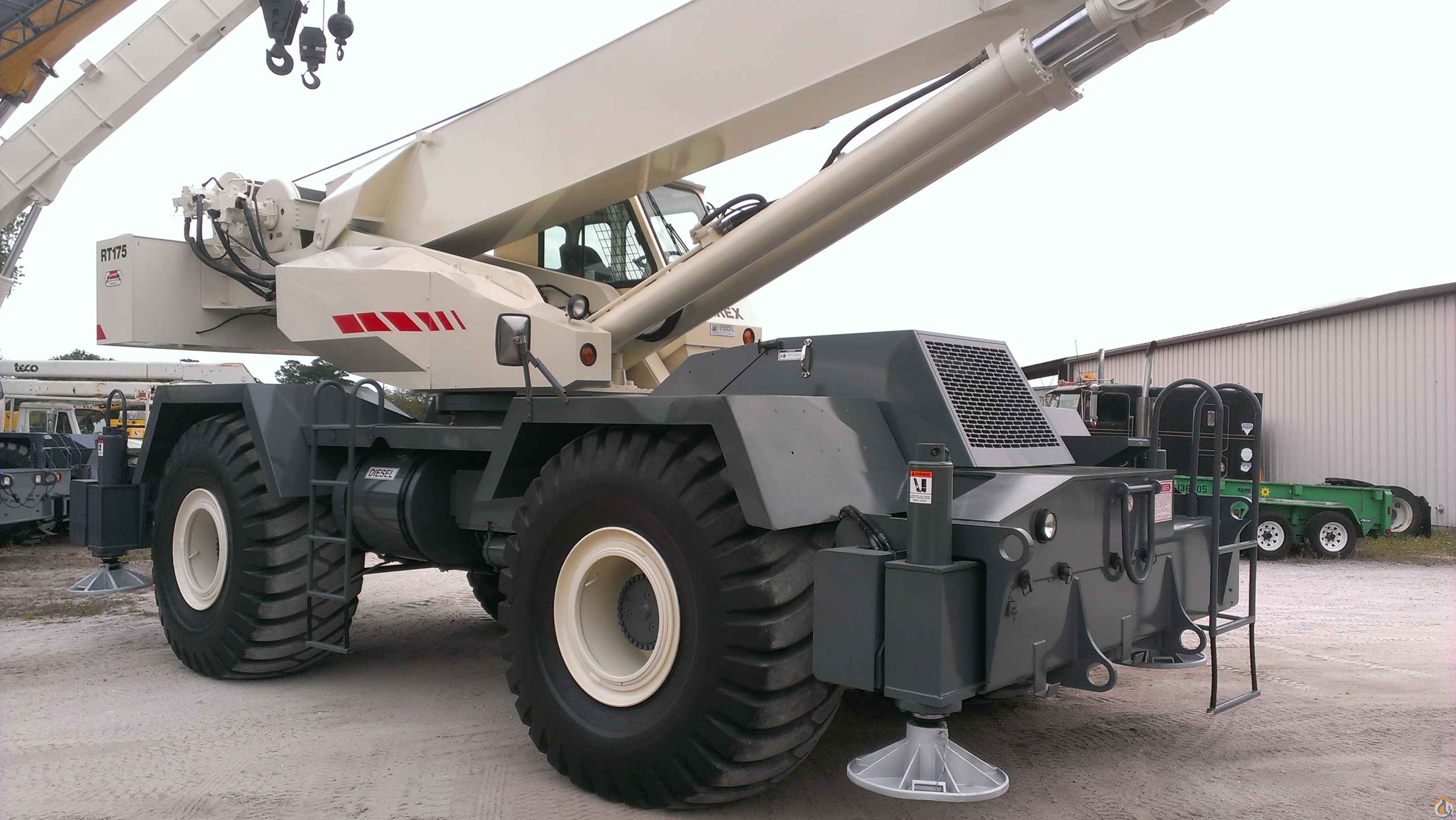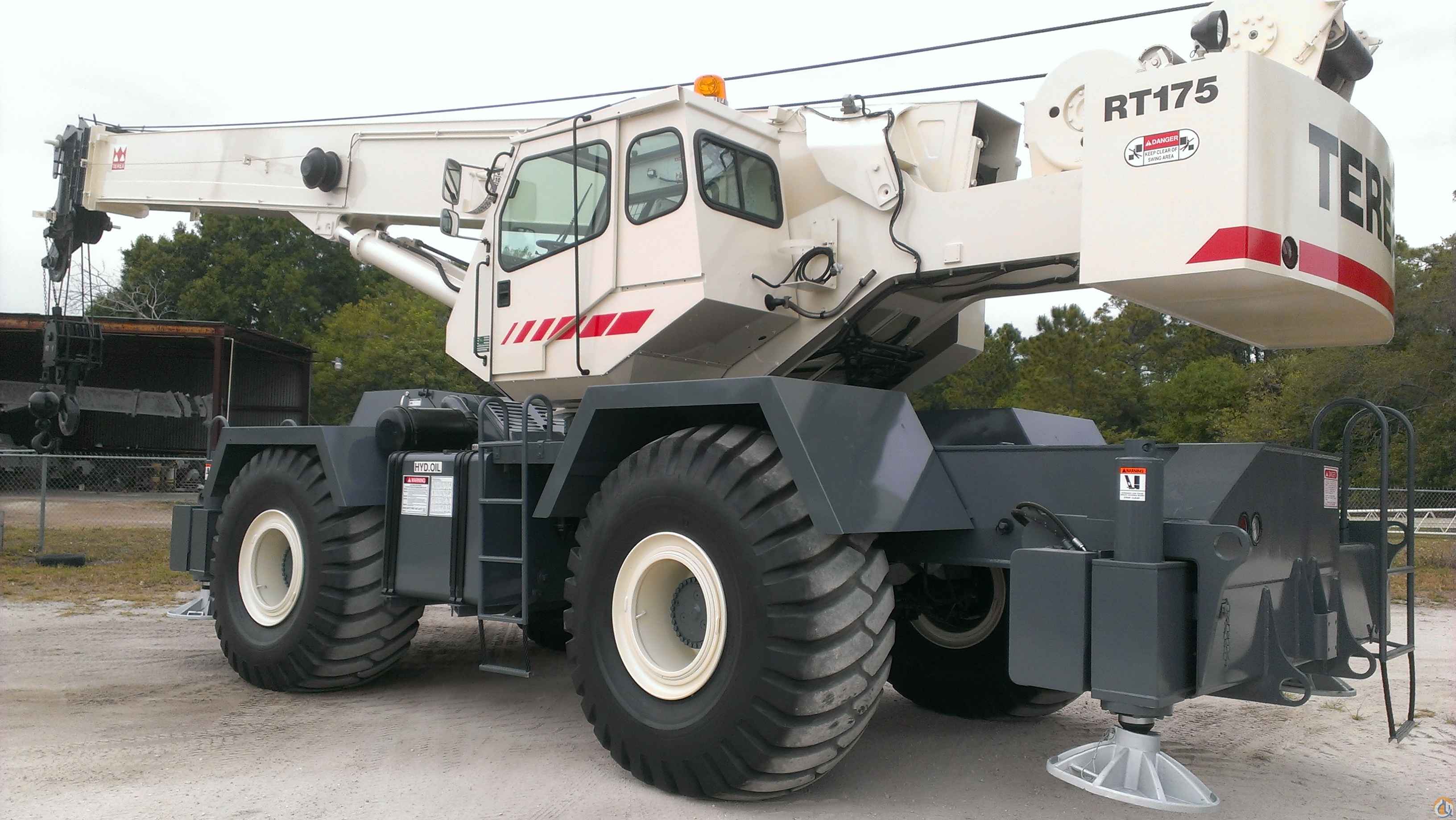 LOCATION FLORIDA...2001 TEREX RT175 75 TON RT CRANE, 126' FULL-POWER BOOM, 60' OFFSETTABLE JIB, 4X4X4 DRIVE, JOYSTICK HYDRAULIC CONTROLS, (2) WINCHES, 6CT8.3 CUMMINS 8.3L, AUTO TRANS, EXCELLENT 29.5-25 TIRES, GREER FULL LMI SYSTEM WITH A2B, 75-TON QUICK REEVE BLOCK & HOOK BALL WITH ROOSTER SHEAVE, VERY LOW HOURS, NEW HOIST CABLE BOTH DRUMS, CRANE HAS BEEN RECERTIFIED, CONTRACTOR OWNED CRANE, LOOKS & RUNS LIKE A NEW CRANE! IMMACULATE!!!