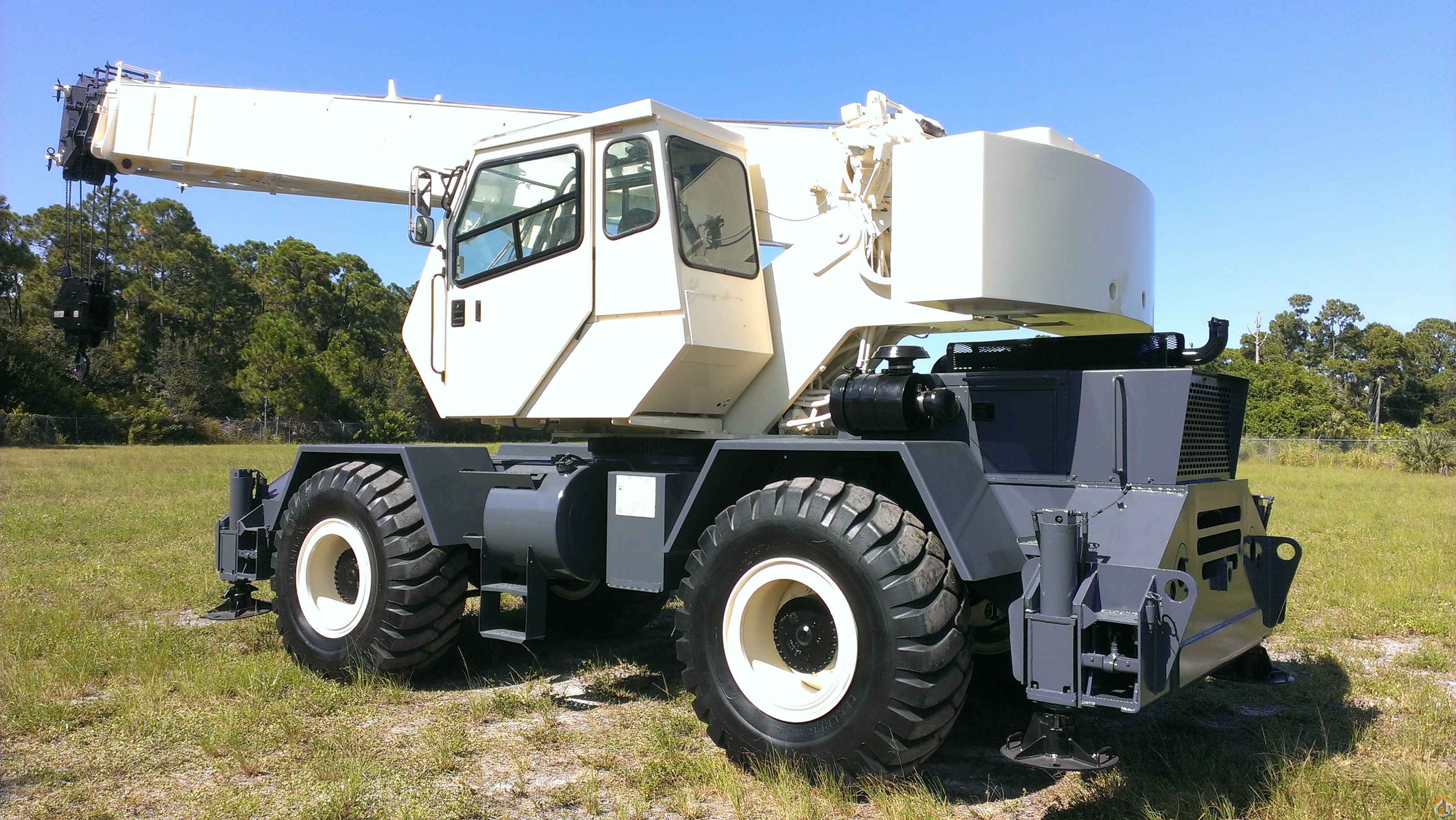94' FULL POWER BOOM PLUS 43' OFFSETTABLE SWING AWAY, 4X4X4 DRIVE, LOOKS LIKE AND RUNS LIKE A NEW CRANE ! CUMMINS 5.9L, AUTO TRANS, EXCELLENT 20.5-25 TIRES, GREER LMI SYSTEM WITH A2B, ONE OWNER CRANE, BLOCK AND BALL, LOW HR. CRANE ! NEW PAINT WILL INSTALL NEW DECALS.