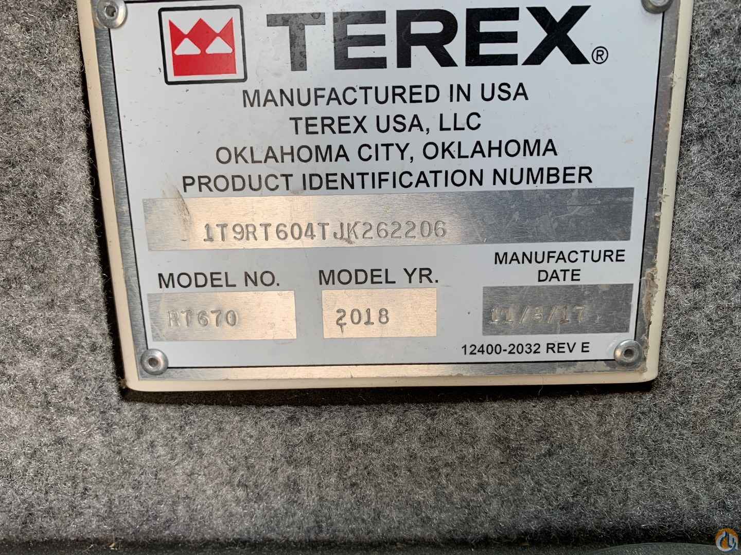 2017 TEREX RT670 70 TON ROUGH TERRAIN HYDRAULIC CRANE EQUIPPED WITH - PREFERRED EQUIPMENT PACKAGE: