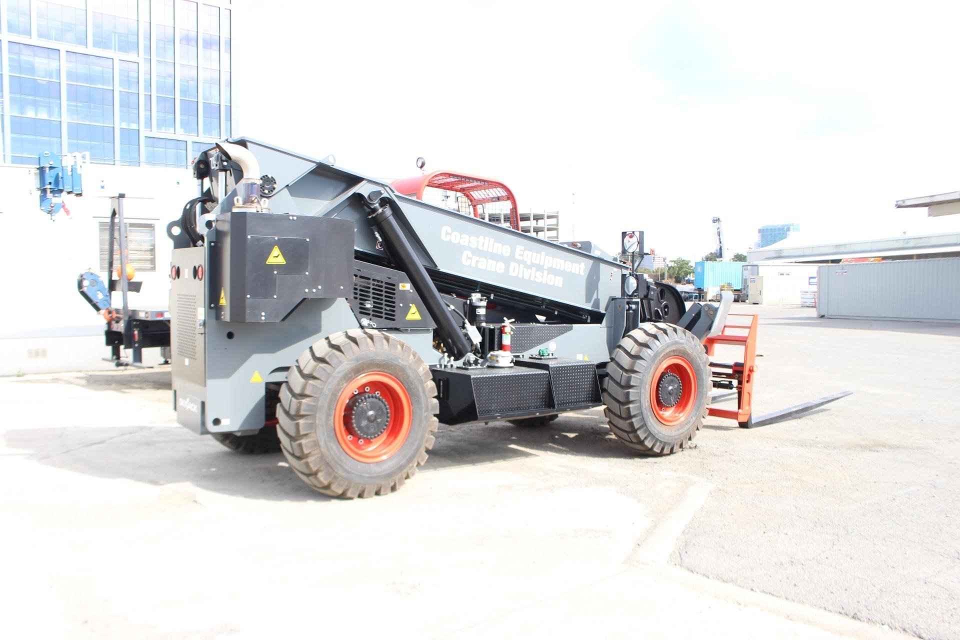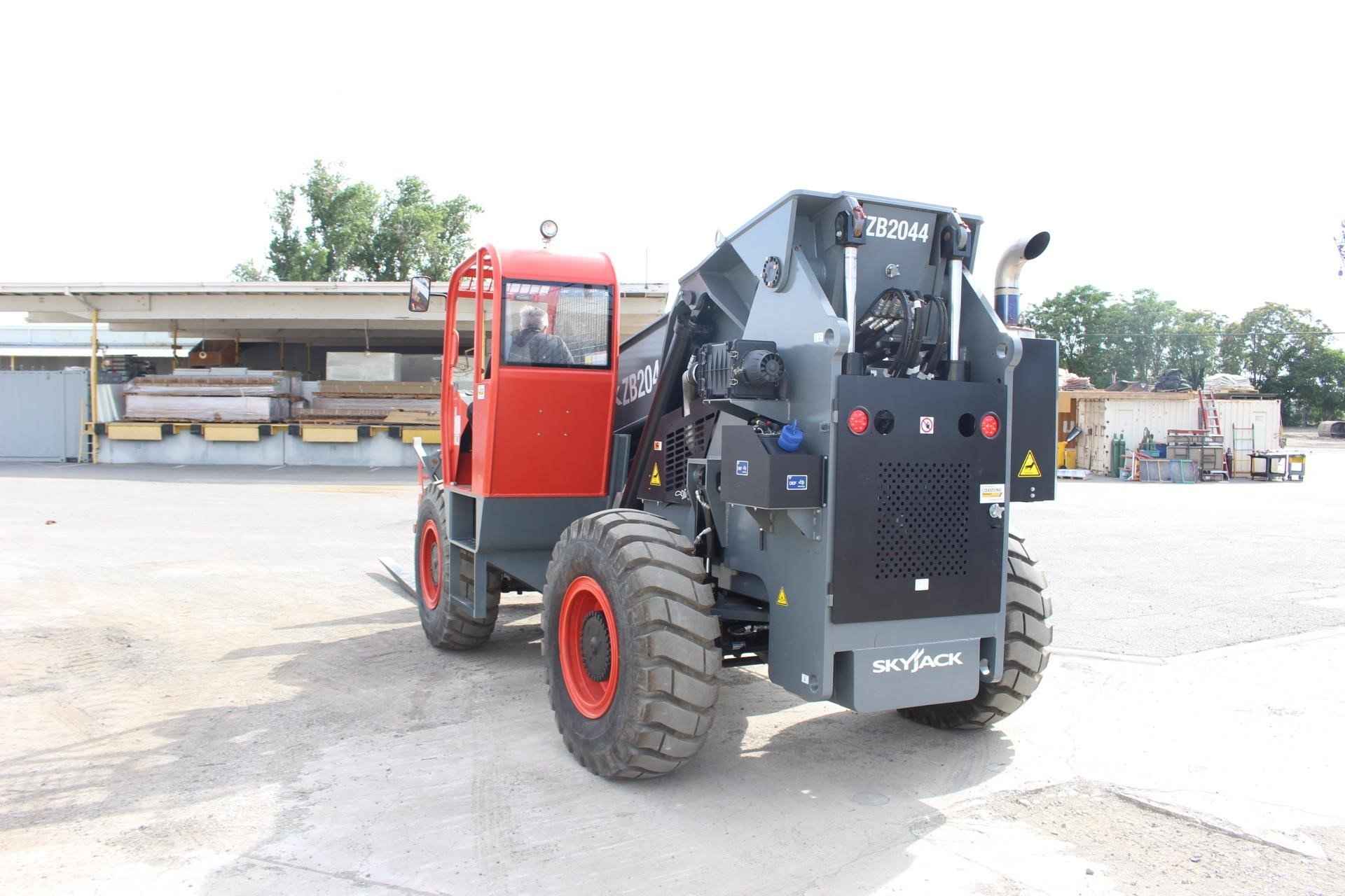2022 Skyjack ZB2044 Standard features: • Outriggers • Rear Axle “Stable-Lock” cylinder with backup accumulator • Standard quick attach carriage mount system • Auxiliary hydraulic for boom attachments • Dual Lift Cylinders • High pivot boom mount design • Rear window and side screen • Lockable under cab storage compartment/step • Adjustable suspension seat with seat belt • Dual joystick pilot operated controls for boom and frame level functions • Tilt adjustable joystick console • Gauge instrumentation • Electronic power view engine monitor/gauge • Lockable steel swing up engine doors • Dual batteries • Independent front/rear brake systems • Dual brake accumulators for dead engine braking • Brake activated transmission disconnect • 55 gallon steel hydraulic tank • 49 gallon steel fuel tank • Mirrors, right and left side • Remote grease fittings for axle trunnion mount lubrication • Easy to move steel component and access covers Key Features: • 20,000 lbs. Maximum Lift Capacity • 44’10” Maximum Lift Height • 12,000 lbs. Capacity @ Maximum Lift Height • 27’5” Maximum Forward Reach • 7,000 lbs. Capacity @ Maximum Reach • 3 Mode Steering • 72” floating pin carriage with 60” pallet forks, 22,000 lbs. capacity Additional Options Included: • Lighting kit with guard • Extra operating Light with Guard • Boom mounted operating lights • Standard open cab • 2.75 x 6 x 96 Forks • Foam Filled Tires • 72 Dual Hydraulic Fork Positioner • 8’ fork extensions Engine: Cummins QSB 4.5C turbocharged and charge air cooled diesel, 168 HP. Transmission: Dana powershift, 3 speed forward and 3 speed reverse. Top speed 20.5 mph