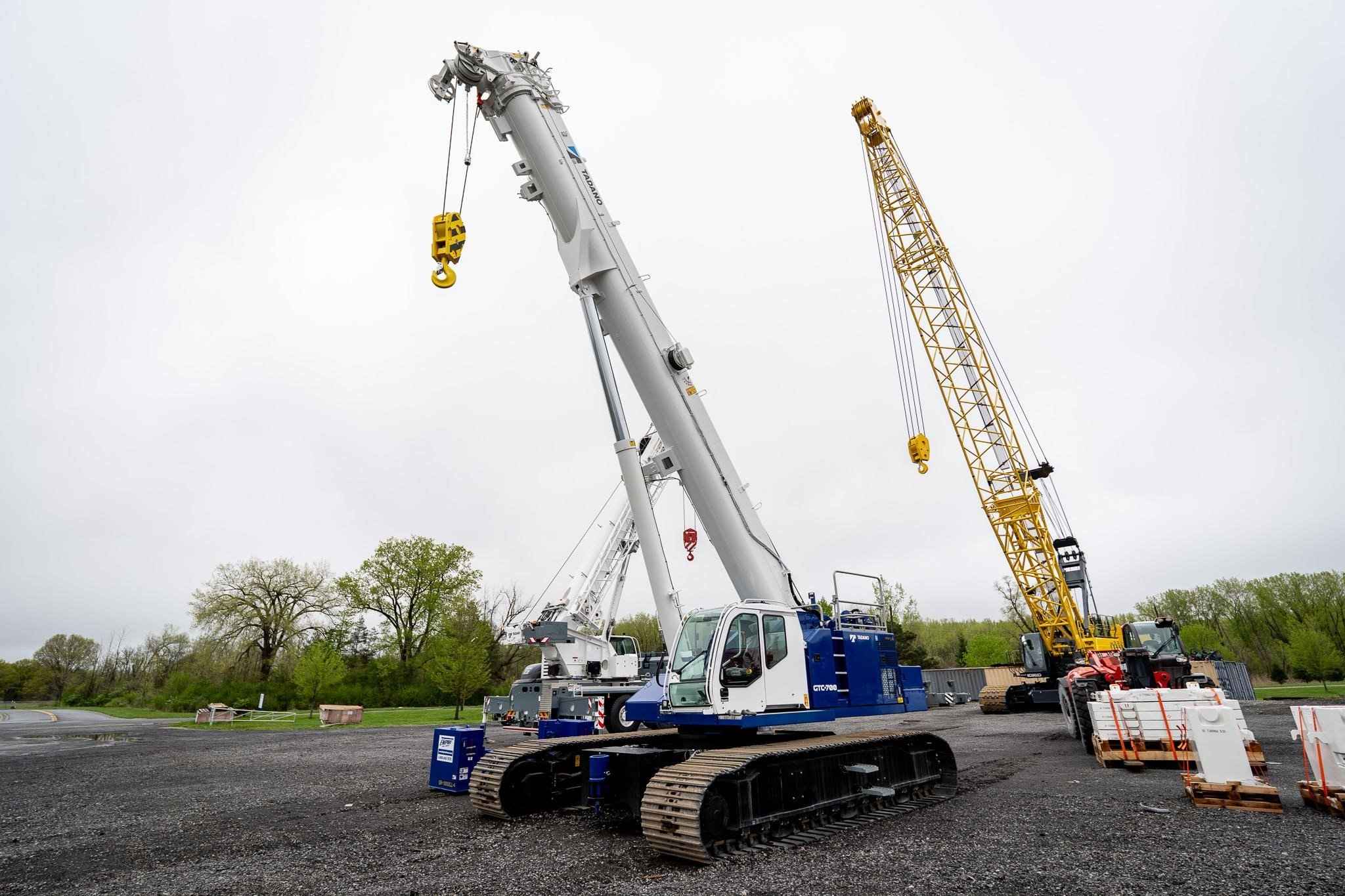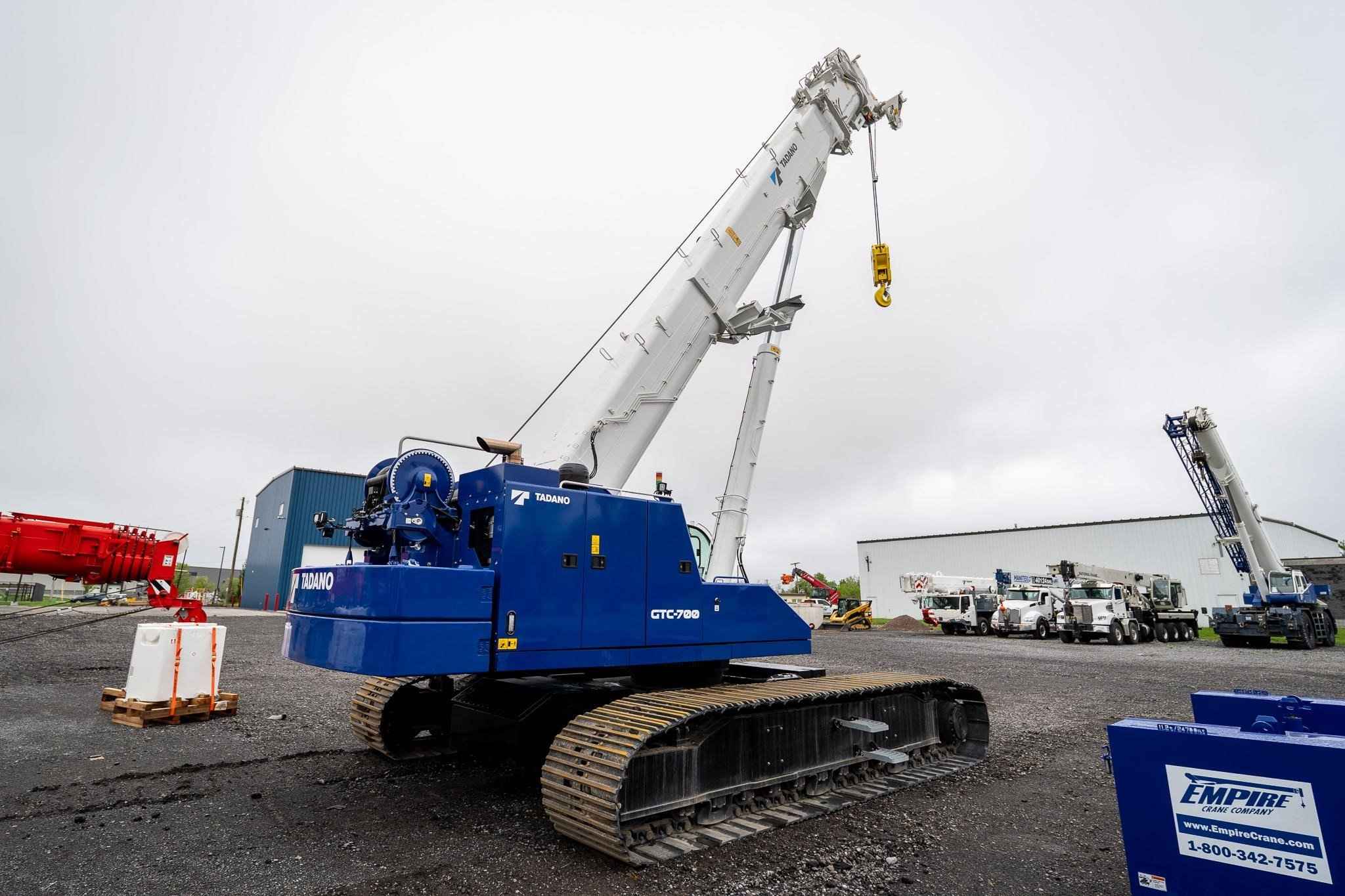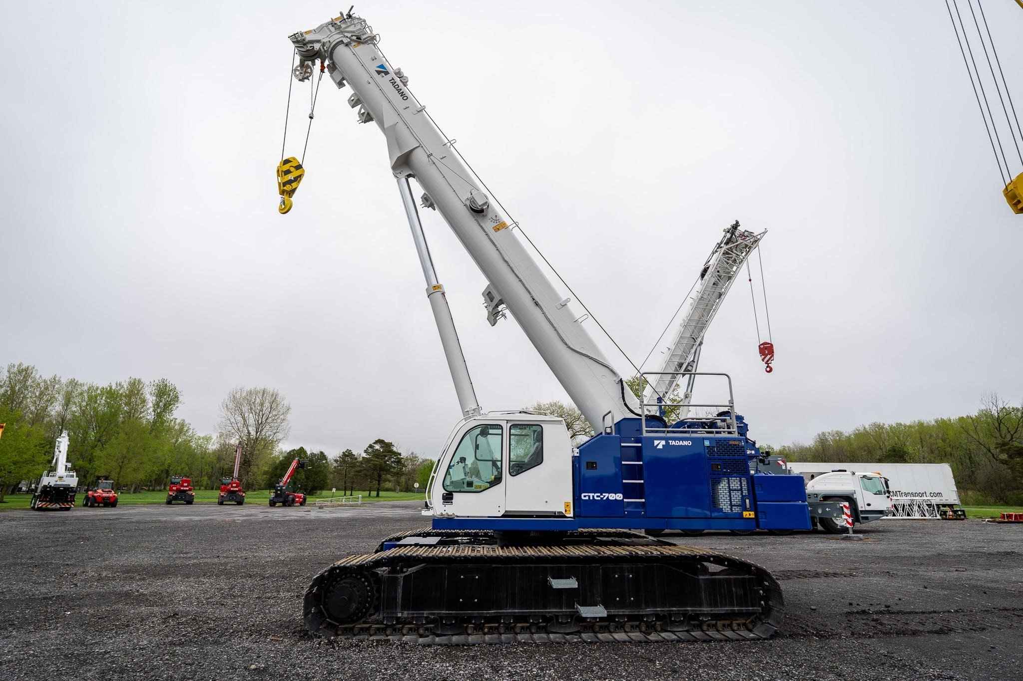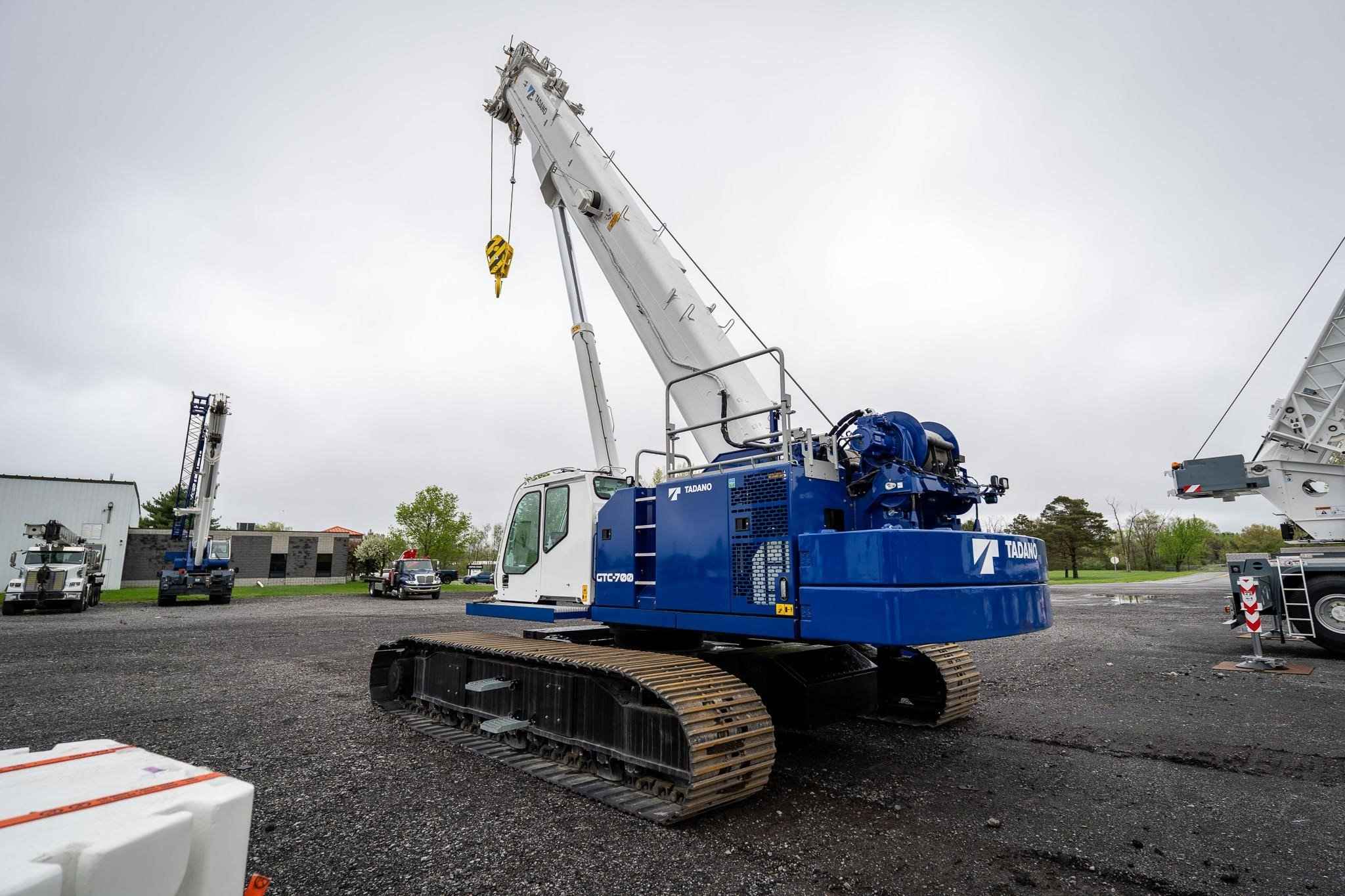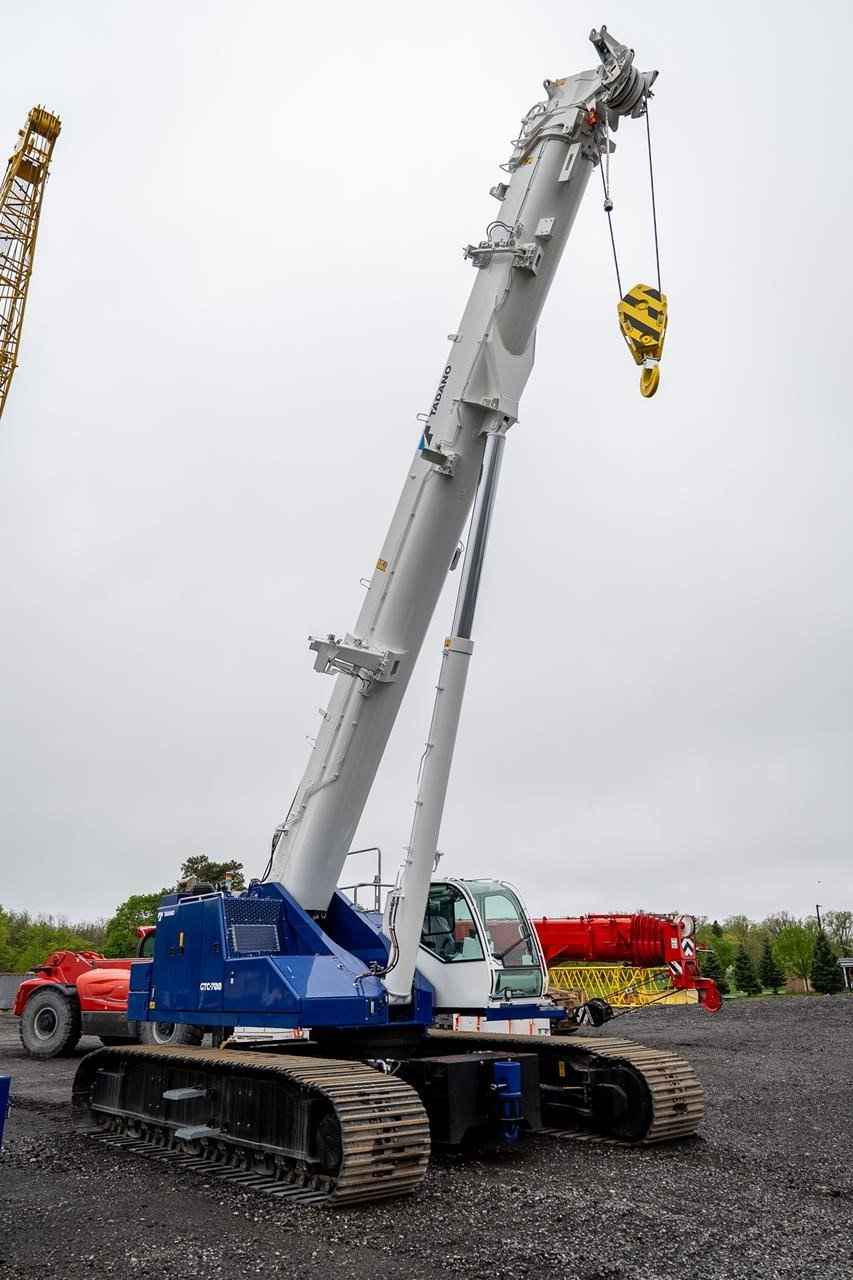 The GTC-700 is a 70 USt capacity machine offering a full power, 4‐section 37.7 ft – 118.1 ft hydraulic boom designed to perform exceptionally well for lift work, while also being capable of out‐of‐level, pick‐and‐carry, and foundation work. • 70 USt lift capacity • 4-section 37.7ft - 118.1ft full power telescopic boom • 50 USt 3-Sheave Hook Block • Cummins QSB6.7 310 HP EPA Tier 4f/EU Stg V Diesel Engine • Standard Cab with A/C, Heat, Engine Monitoring, tilts to 20 degrees • Tadano AML-C LMI System with North American (ft - Ibs) Load Charts, for 0.5°, 1.5°, 2.5°, and 4° slope, and 3 color light bar • Automatic & Manual Slope Selection Modes • Cab Mounted Keyed LMI Override Enable Switch • TADANO HelloNet Telematics • Video Camera Monitor - 3 closed circuit cameras - winch, rear, and right-side view • Work Light Package • Main Winch with grooved drum, cable follower, drum rotation & last wrap indicator, 650ft, 19mm diameter rotation resistant wire rope • Auxiliary Winch with grooved drum, cable follower, drum rotation & last wrap indicator, 410ft, 19mm diameter rotation resistant wire rope • Auxiliary Boom Head • Hydraulic Extendable Undercarriage with 3 track width zones & OPTI-WIDTHT • 35.4in (900mm) 3-Bar Semi grouser track shoes • 30,000 lb rear counterweight with radio control removal system • 13,225 lb carbody counterweight • Storage box mounted to Carbody Counterweight • Crane access walkways and folding upper handrail system • Hydraulic Oil - ISO VG32 - Mineral Based Oil • Standard Tadano Blue/White Paint • 1 hard copy of Load Charts and Operation Manuals, and 1 Electronic Copy of Parts Manual • 8.8 USt Headache ball with swivel hook & safety latch • Anemometer Boom Mounted Anemometer with digital display in cab • Boom Beacon Boom Tip mounted 24V Red Warning Light