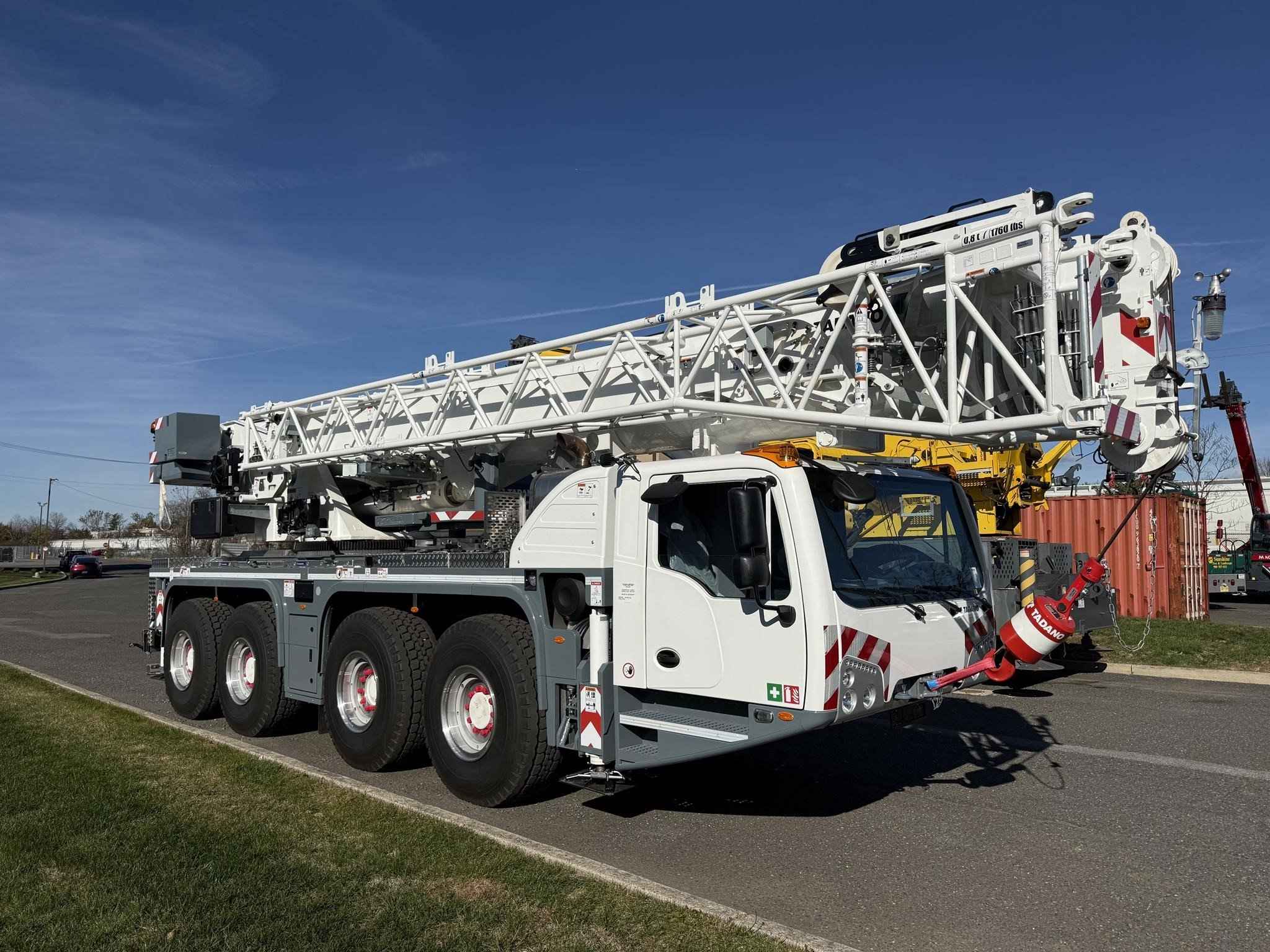 88 USt lift capacity 35.8' -196.9' main boom 27.9'-52.5' Double folding swing-away Jib Manual Offset 20°/40 Swing away rooster sheave 50 USt 3-sheave block 8 USt Hook Axles 8x6x8 2 hoist Remote control Wheels: 445/95R25 Steel Rims The AC 4.080-1 blends outstanding reach with exceptional versatility. Its compact size on 4 axles gives this all terrain crane best-in-class jobsite accessibility. Fully equipped and roadable within a 18.2-ton / 16.5t axle load, extra transport is rarely needed. With a main boom length of 196.9 ft / 60m, the AC 4.080-1’s reach can expand even further with a 21.3 ft / 6.5m extension that can be offset by 25° and 50°. Its capacity is a generous 26.2-ton / 23.8t. Whether used as a main crane or a powerful assist crane, the lifting capacity in steep boom positions makes the AC 4.080-1 unbeatable in its class.